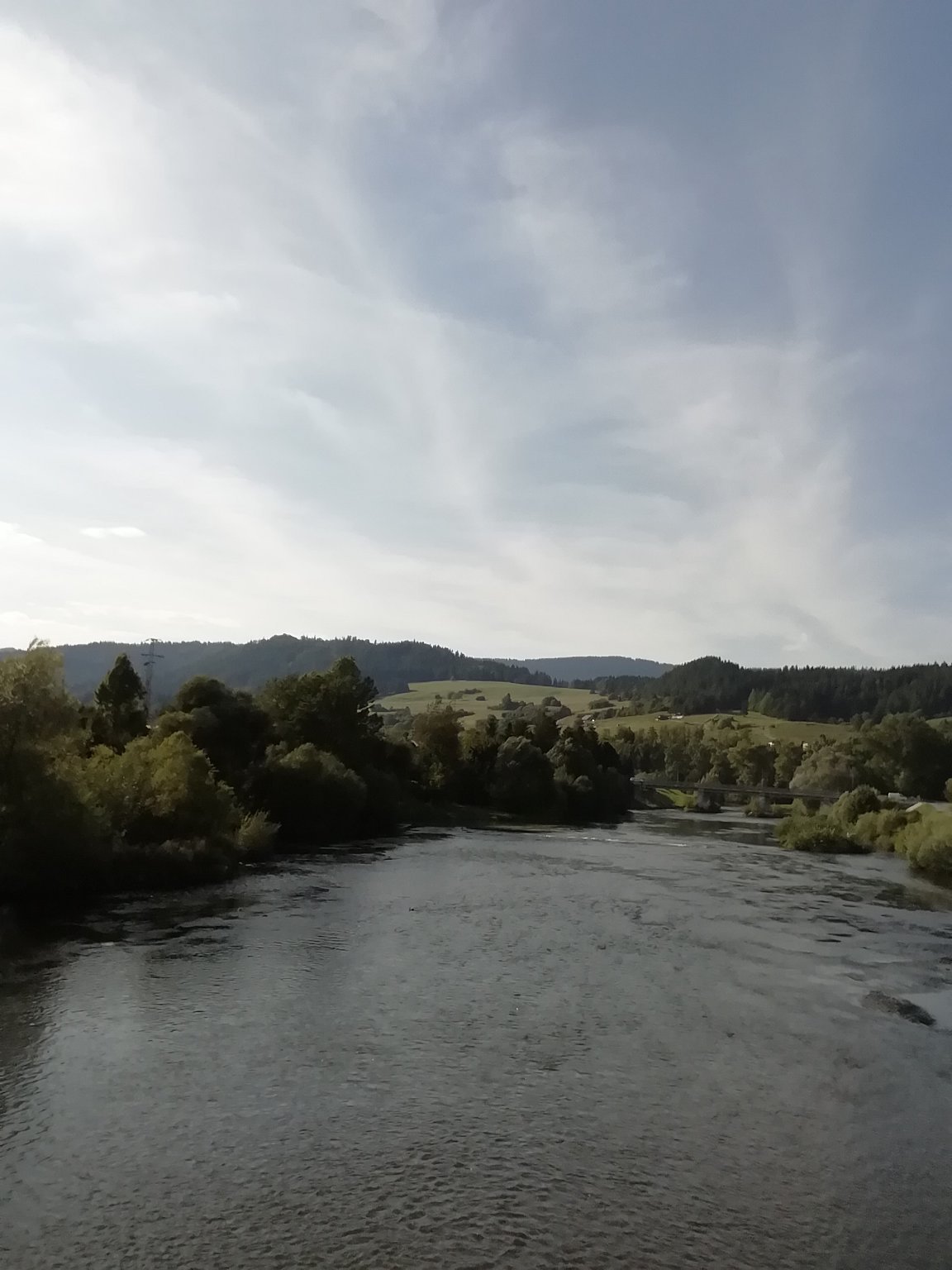 Polojasno s převažující vysokou oblačností. Čerstvý vítr se změnil na mírný jižní. Tlak 1003,4 hPa, vlhkost 48%.
