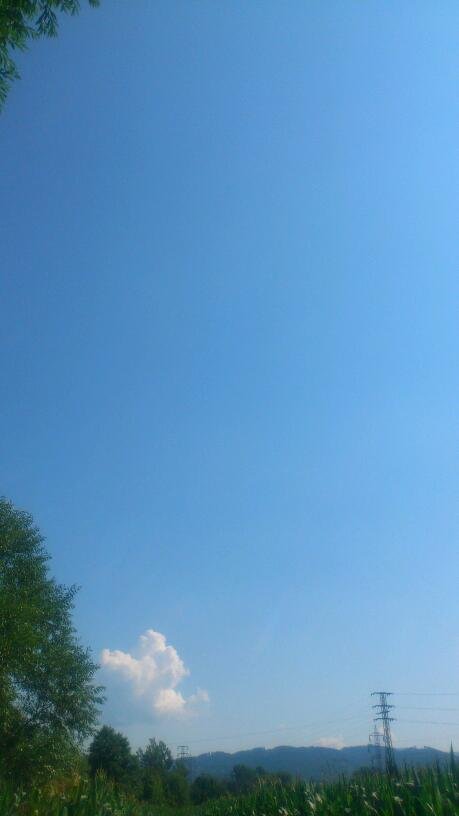jen díky drátu jsem zachytila jedinou bílou skvrnku na obloze - měsíc - jasno - teploměr po 8 hodině na sluníčku ukazoval 40° - skoro nefouká žádný vítr