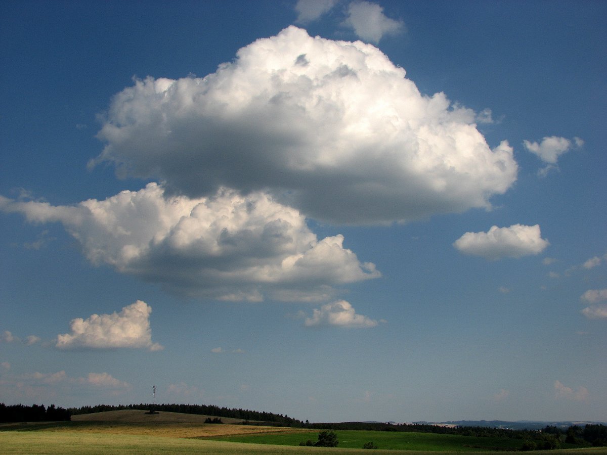 Vlhkost 26%,tlak 1015 (začíná klesat) a západ slunce v Krušných horách (Telnice)