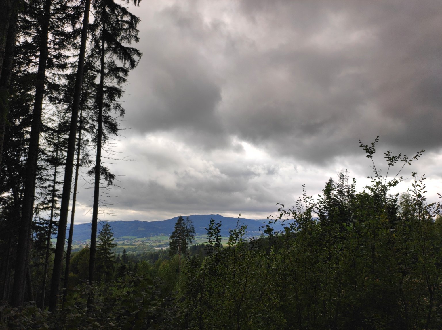 16,2°C, Zataženo. Taky krásný les tu byl, teď je tu akorát bordel...