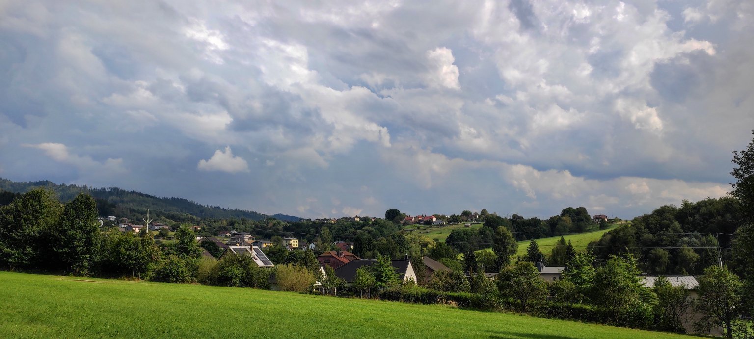 Oblačno až skoro zamračené, búrka, mierny dážď