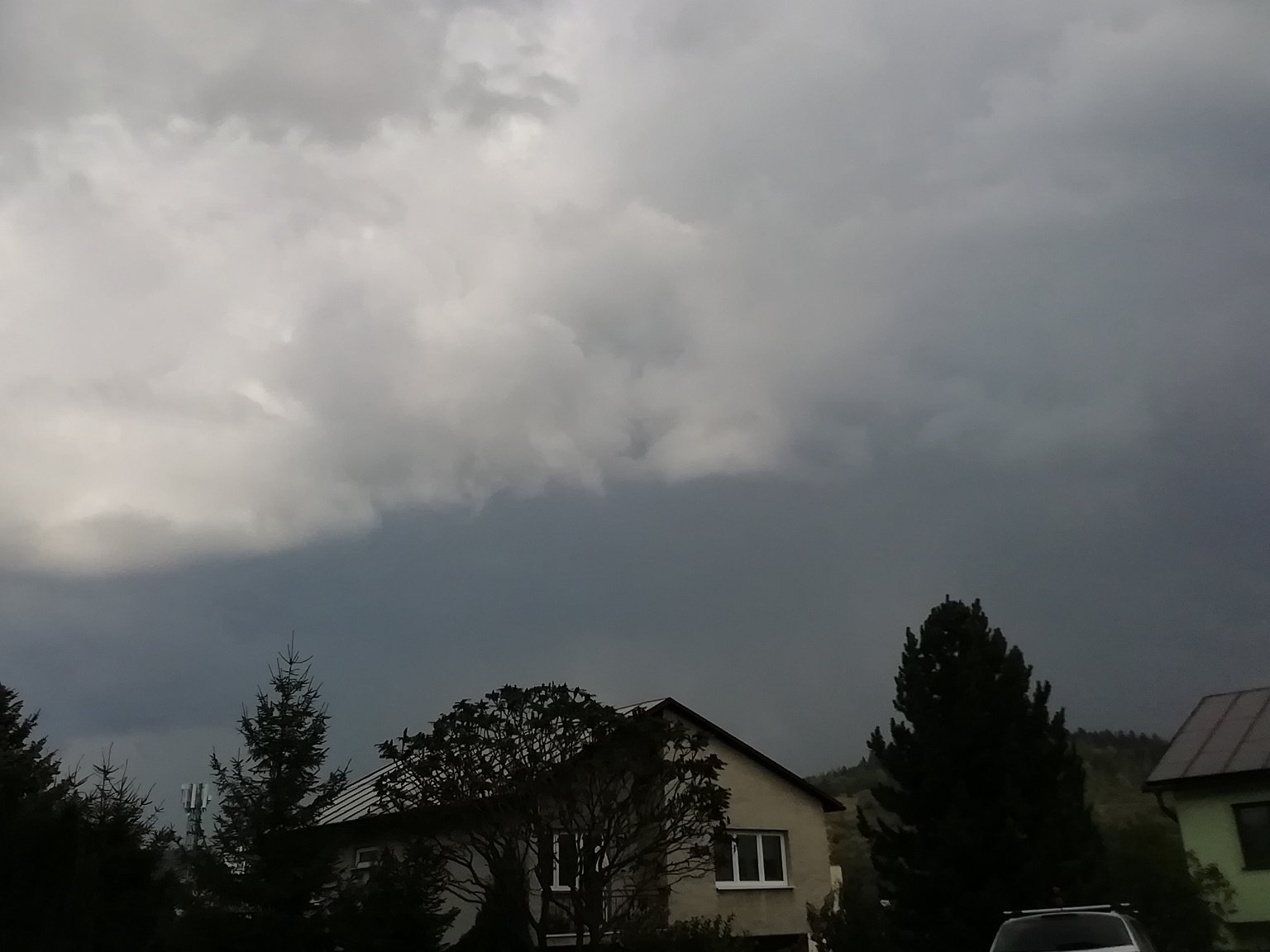 Skoro zamračené až zamračené, búrka, slabý dážď