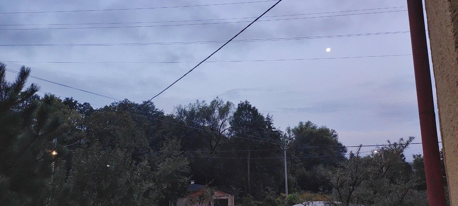 Jasno až skoro jasno, Měsíc dnes ve fázi 98% (pokus o vyfocení Měsíce mobilem).