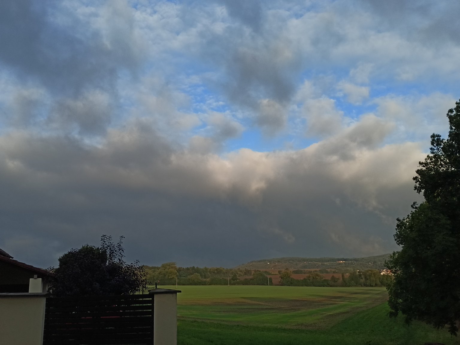 16,7°C, Zataženo. Pocitově je normalně hic i v krátkým... Toto fakt není ranni podzimní teplota, ale letní ranní teplota..