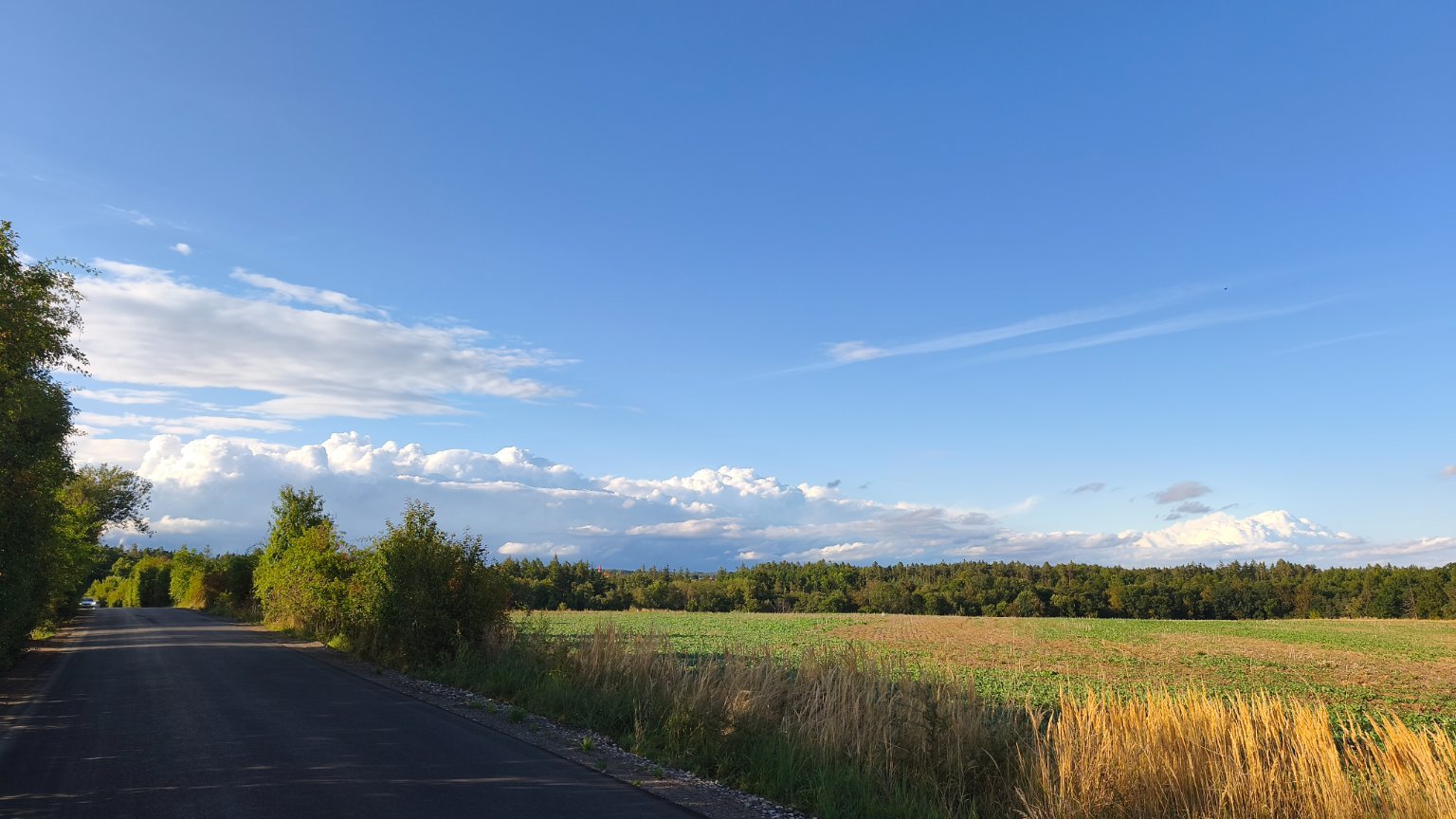 Zataženo a (jen na západě trochu koukne slunce) podjíždí déšť ale možná nás nakonec zasáhne. Bezvětří