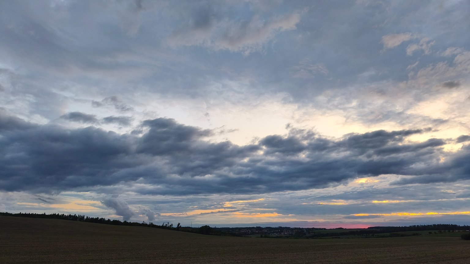 Částečně zataženo a slabý JZ vítr... krásné červánky