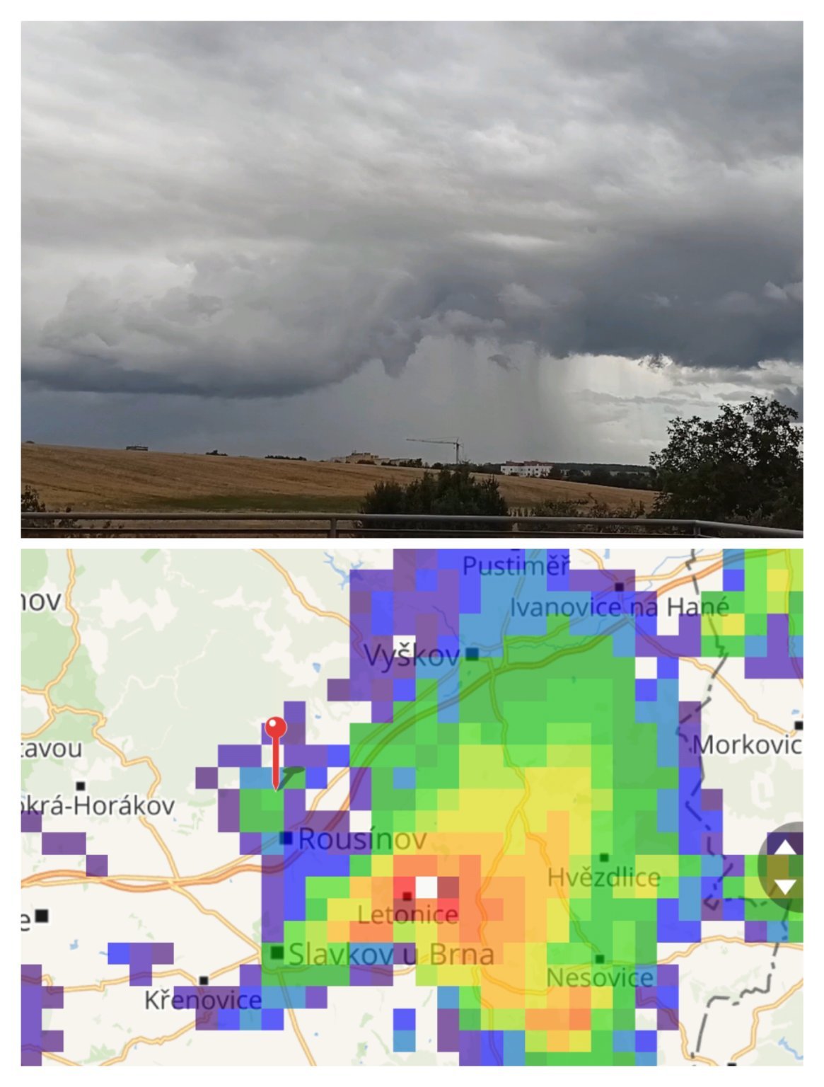 Honza146 Ta stejná přeháňka, která pak se stala bouří dorazili ke mě a pak se rozpadla ale záchytil jsem jeden vzdálený a blízký blesk. A též jsem viděl tu srážkovou stěnu ;) 14.09.2025, 20:59