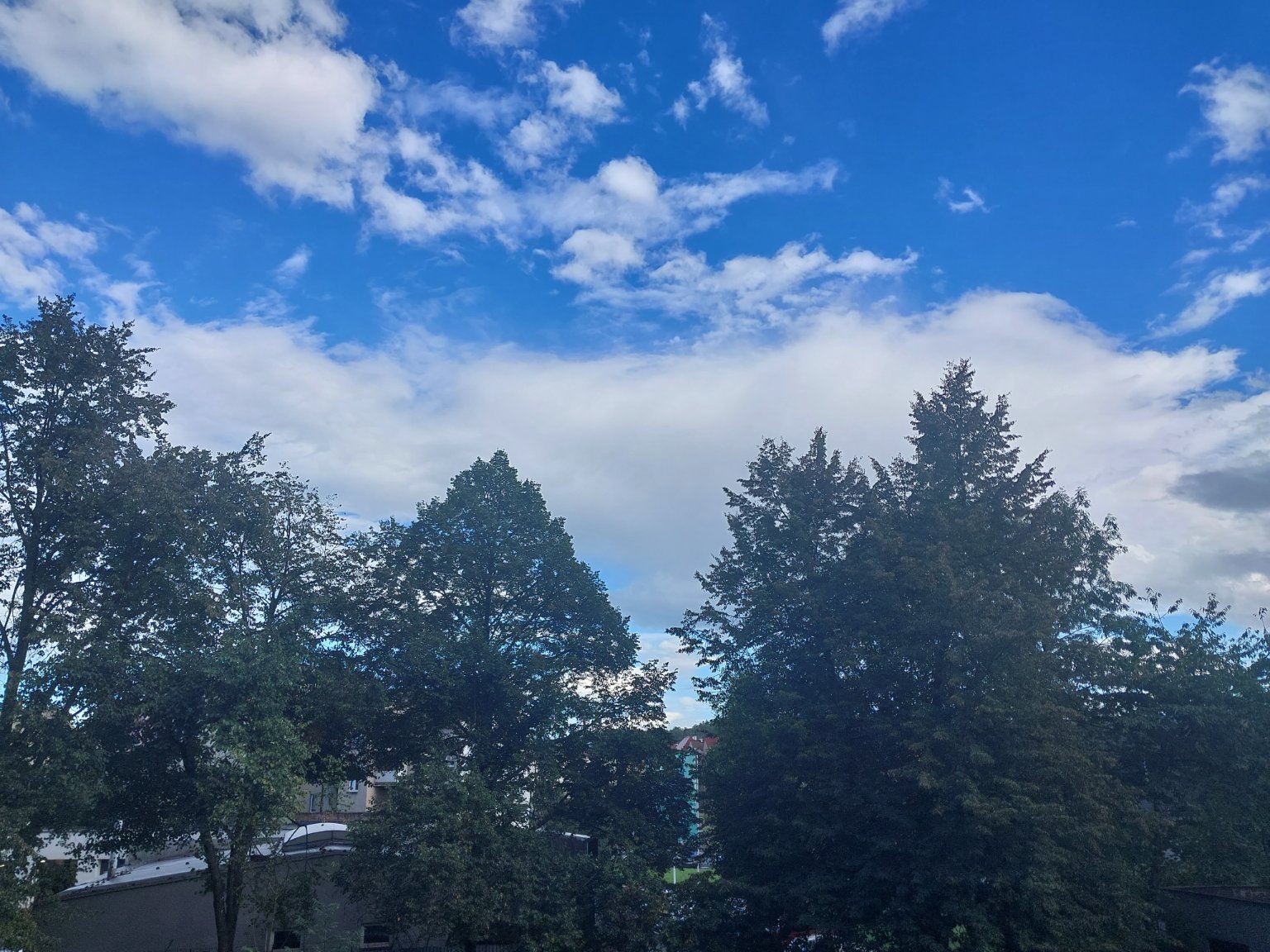 Oblačno až polojasno, v dálce přeháňky. V předchozí přeháňce napršel 1 mm.