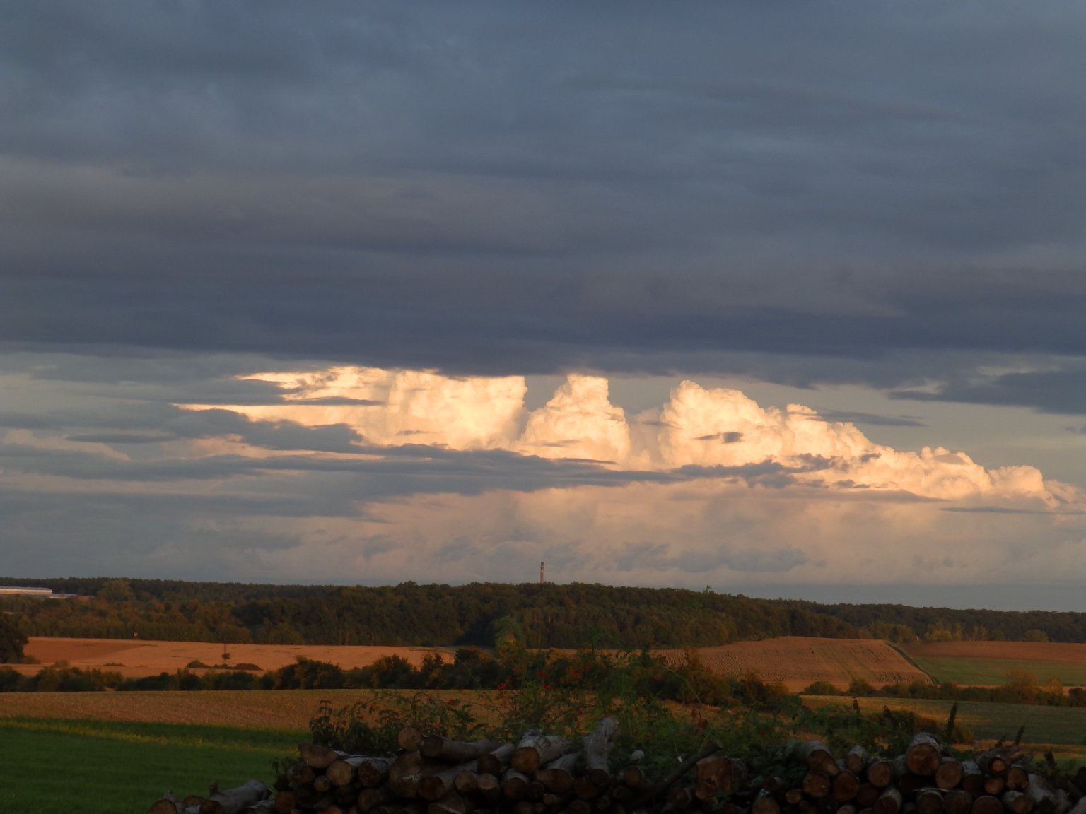 Většinou oblačno, v dálce kupy.