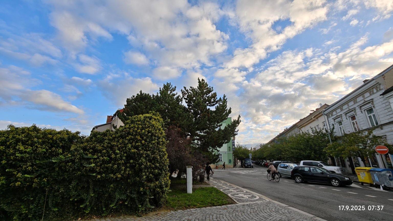 Skoro jasno, mírný západní vítr, tlak 1020 hPa.