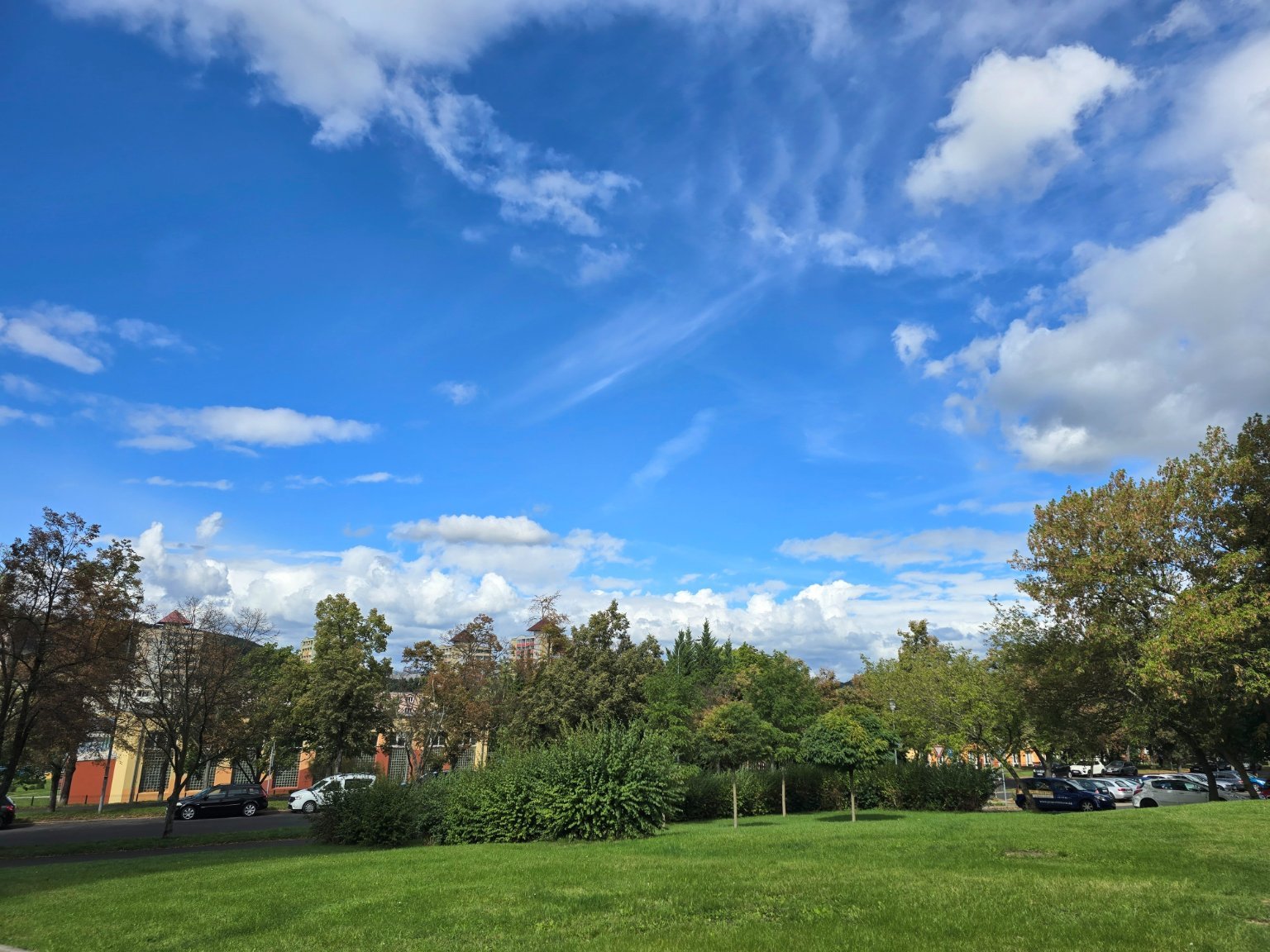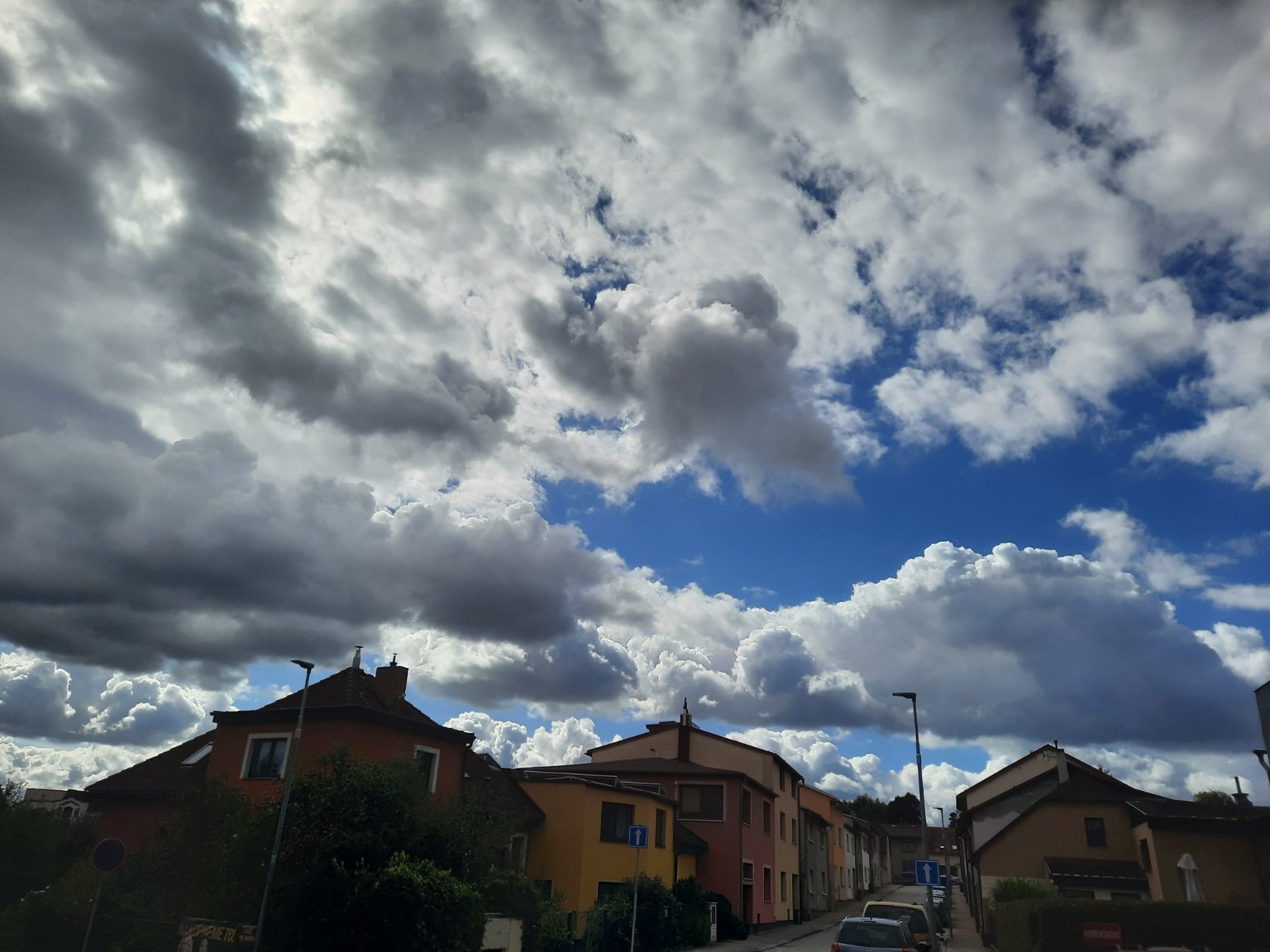 Oblačno, už se tvoří přeháňky a černo z nich. Slabý vítr
