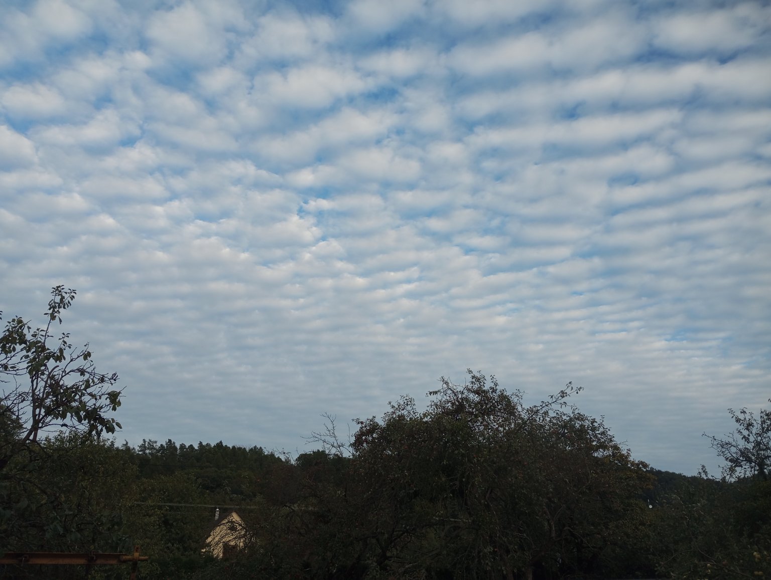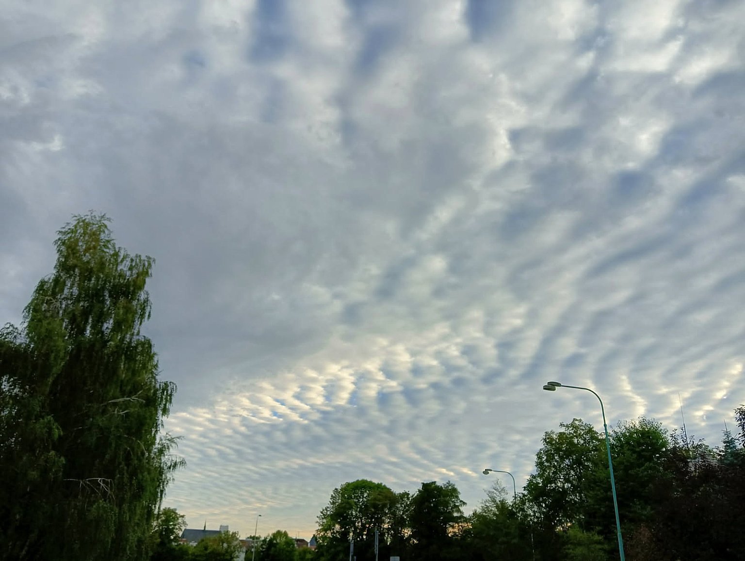 13,7°C, Zataženo až oblačno. Pěkný Altocumulus po celé obloze.