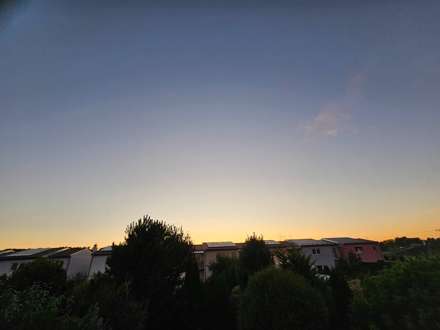 Jen malá, barevná oblačnost Ci, vítr se již uklidnil