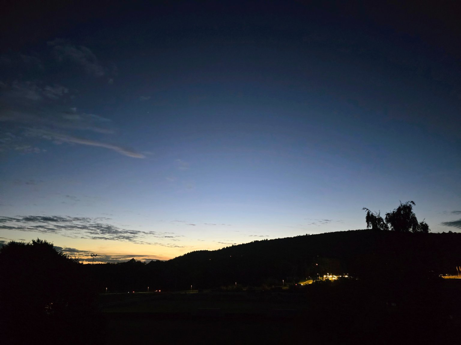 20,2°C, Skoro jasno. Kvůli větru máme mimořadně teplou noc, ale tropická už to nebude, chvilku bylo pod 20°C...