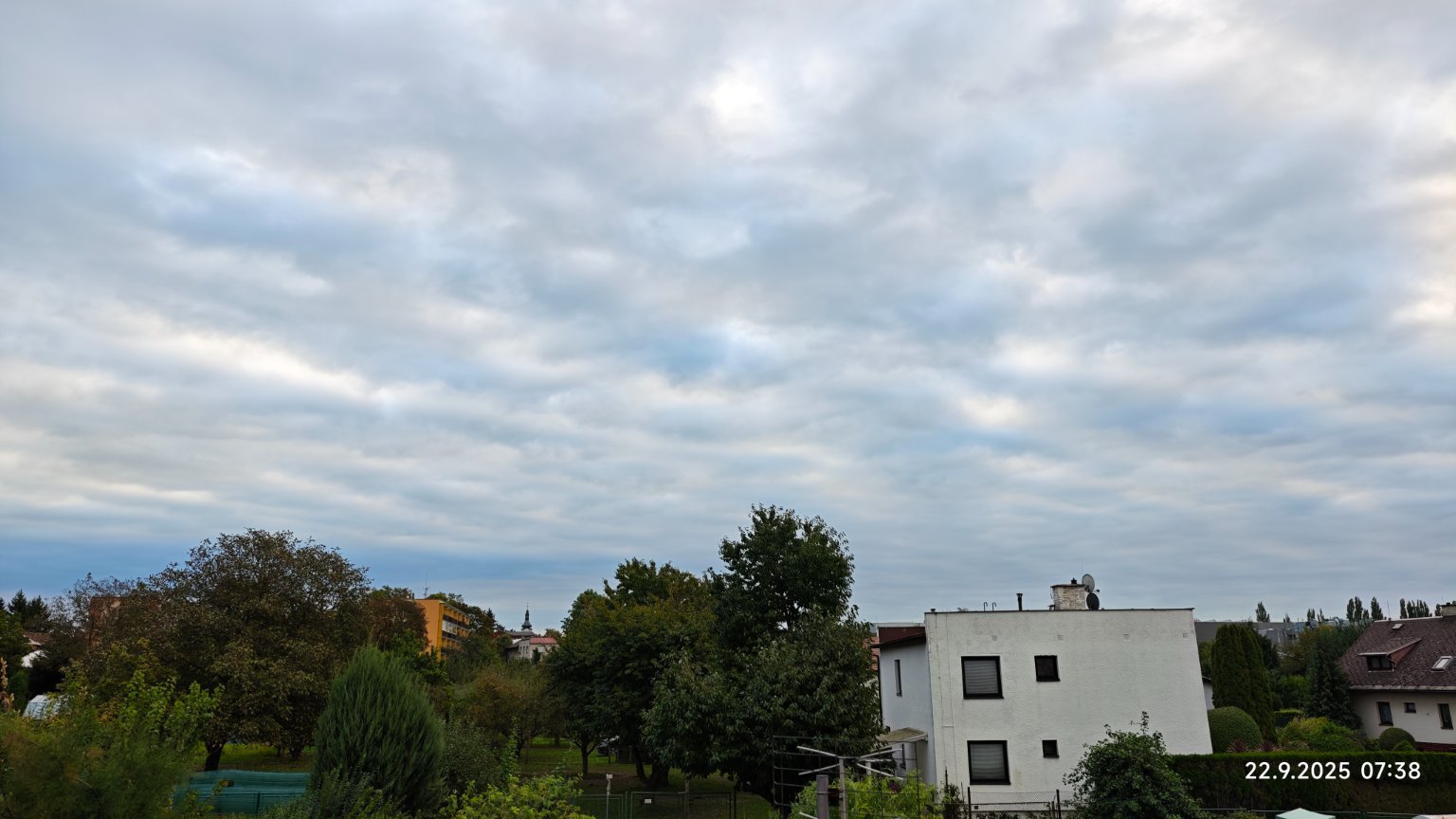 Převážně zataženo nízkou oblačnosti. Vánek nebo slabý vítr (už je chladno)