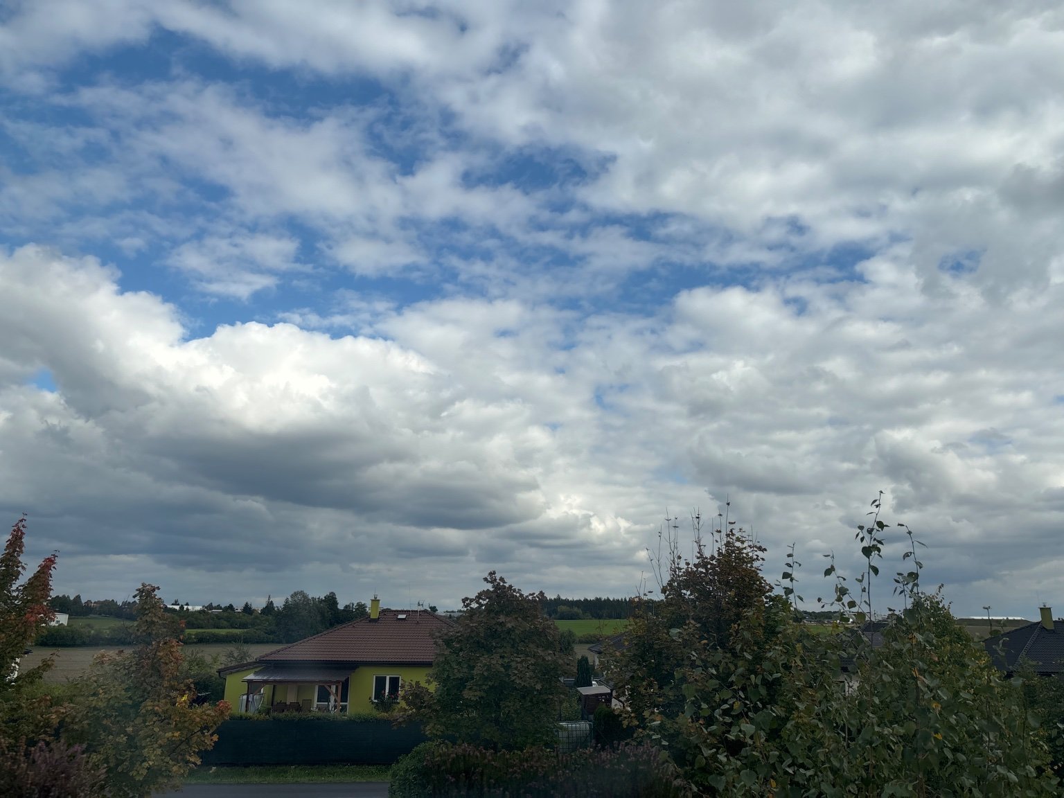 Většinou oblačno, slabé krepuskluraní paprsky.