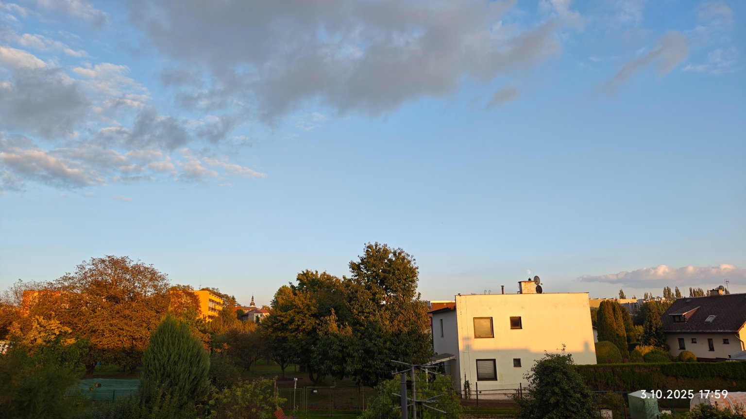 6,3°C, Skoro jasno. Už je dost chladno, likvidace sršniho hnízda.