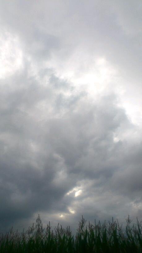 Bezvětří. 4/8 oblačnosti u východního obzoru.