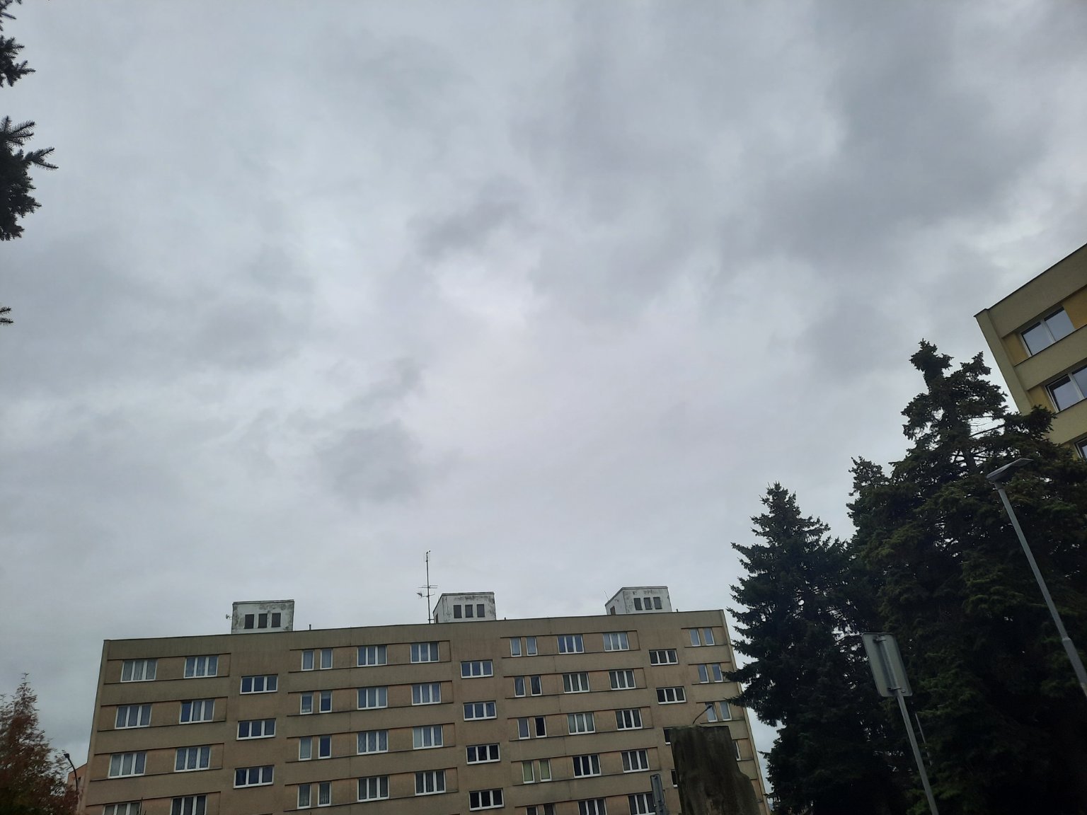 Přechodně oblačno, jinak zataženo, slabé přeháňky, slabý občas mírný SZ vítr