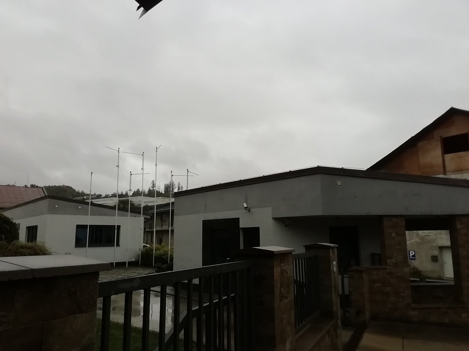 Min 10.4°C, vlhkost 76%, SZ 4.4 m/s -> 13.2 m/s vetrno, tlak 1020.6 hPa, +1.6 hPa/1h