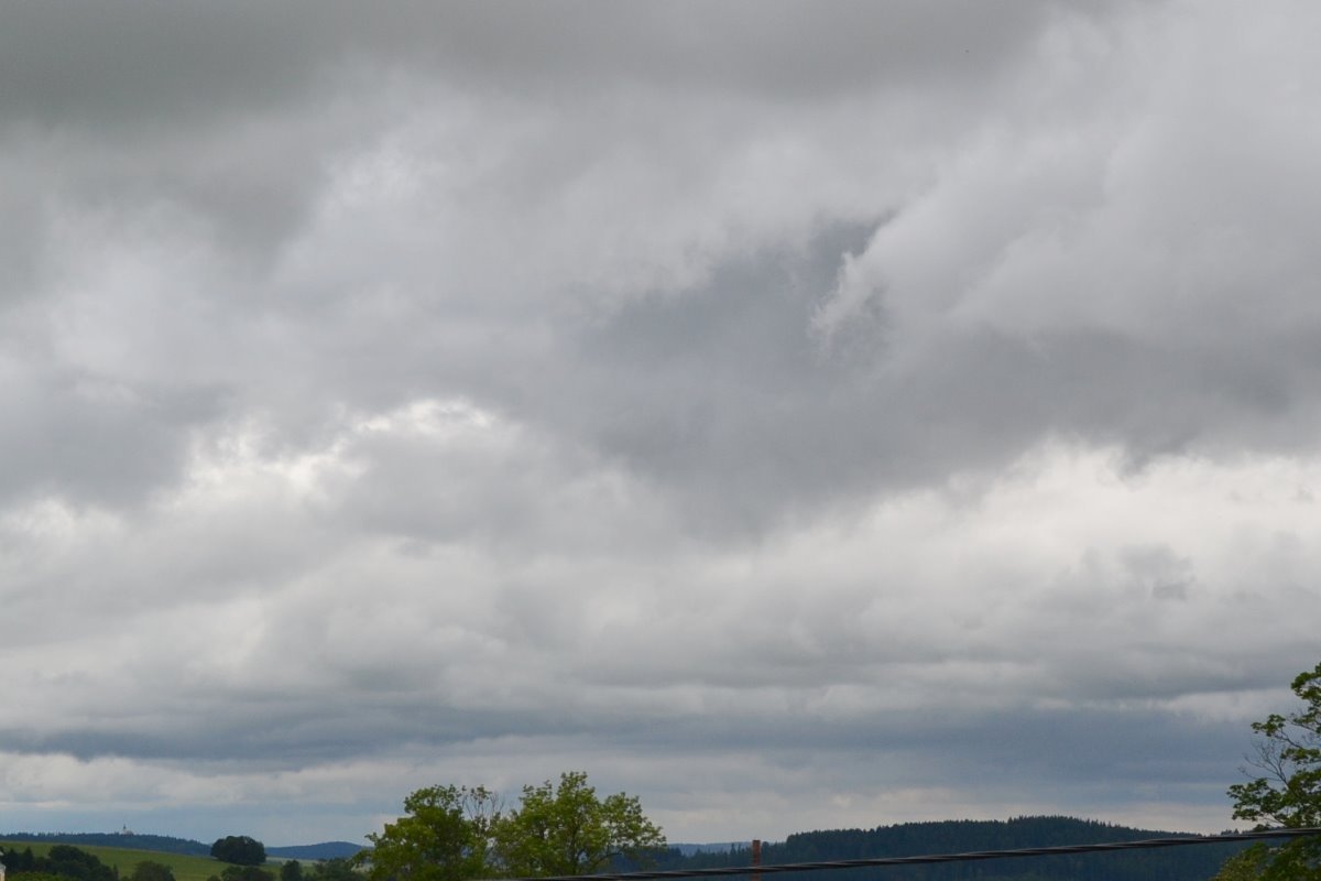 nyní se zataženo změnilo na oblačno - foto z 2014 07 24 v 11:42 zachycuje zataženou oblohu a štěbetající strom :-) - teplota byla +21°