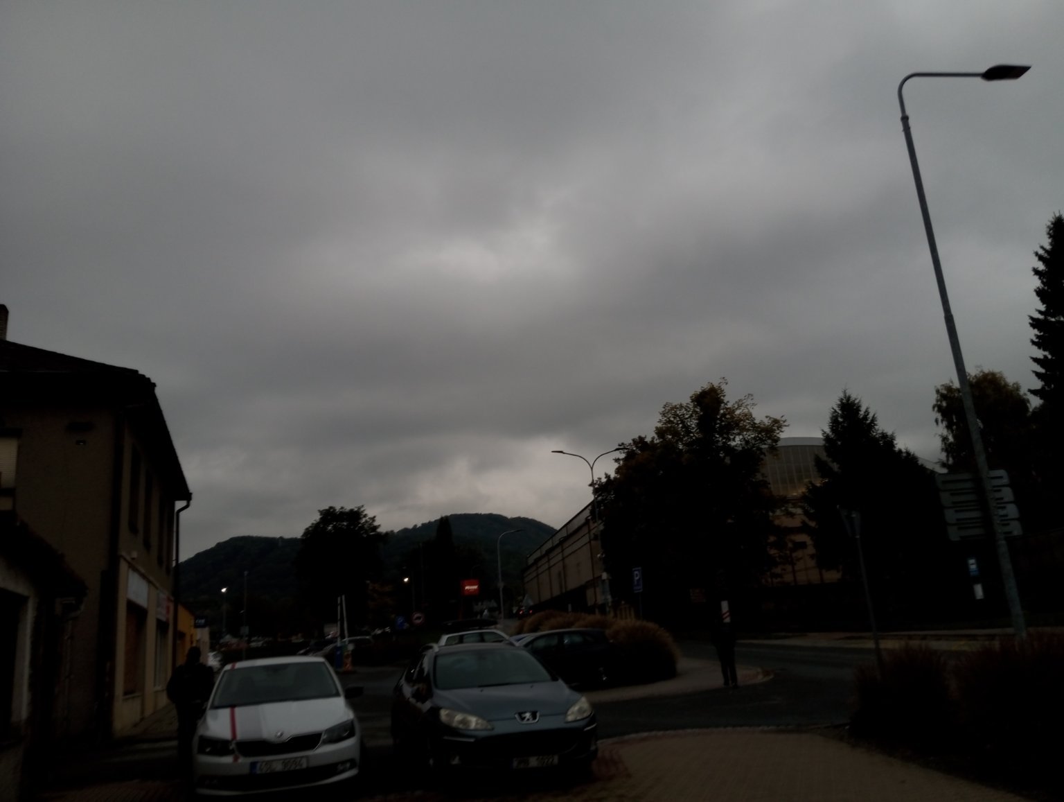 Zataženo, mírný SZ vítr, tlak 1026 hPa.