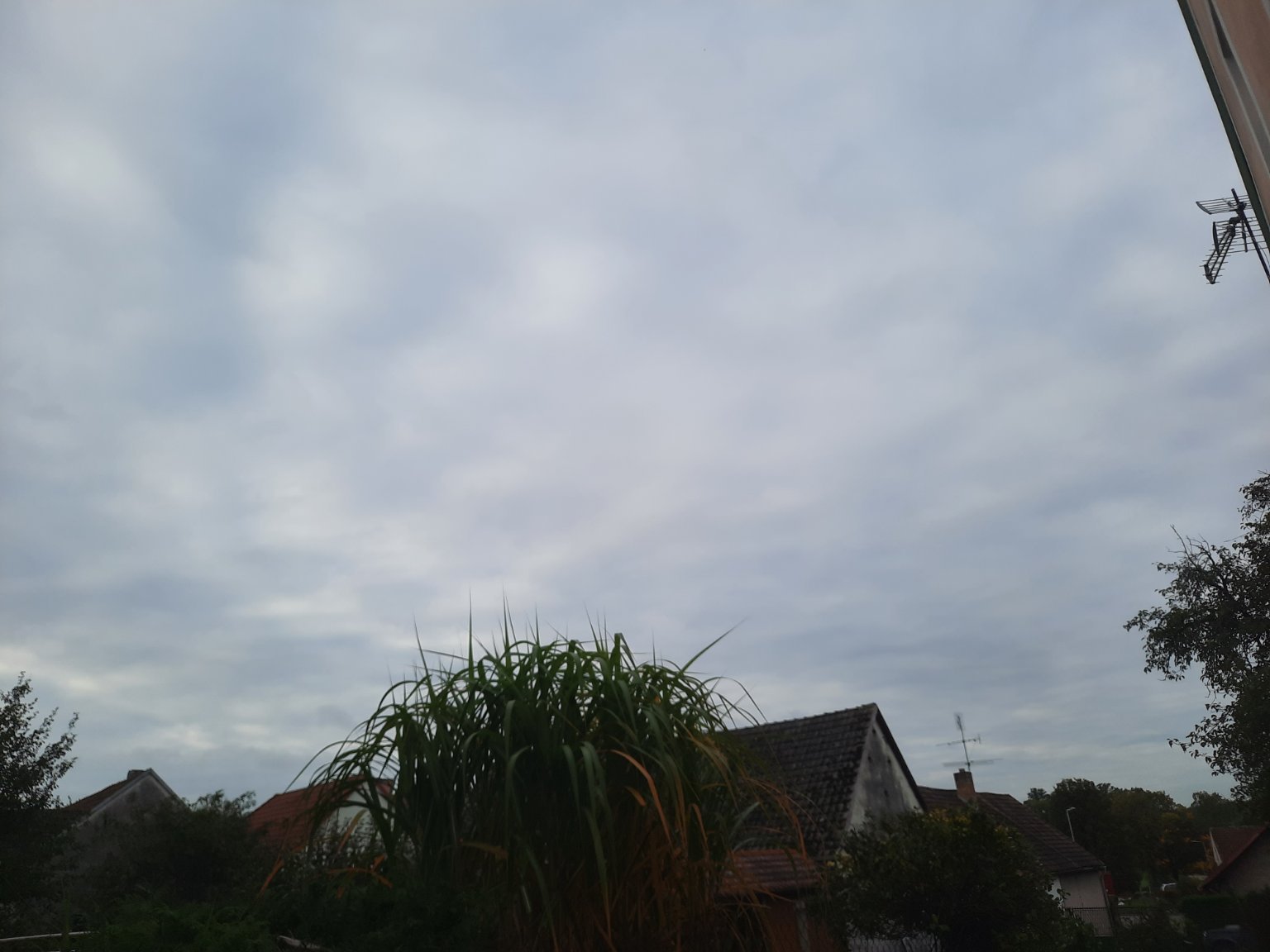 Většinou zataženo. Vítr okolo 1 m/s. Min T dnes 12,9°C