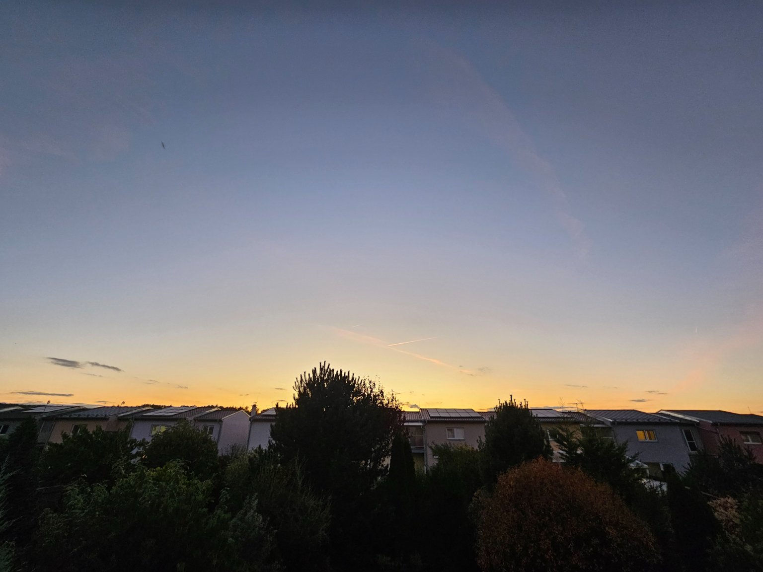 Trochu večerní vysoké oblačnosti. Většinou bezvětří. Max T dnes 17,8°C, Most-Vtelno 17,7°C