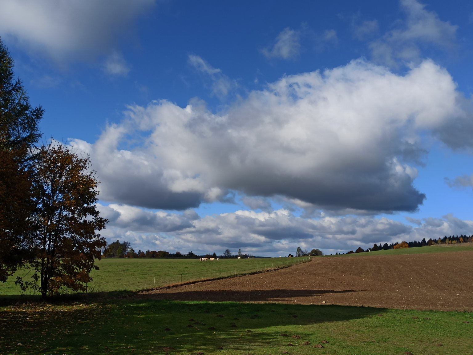 Polojasno, hezky barevná stráň.
