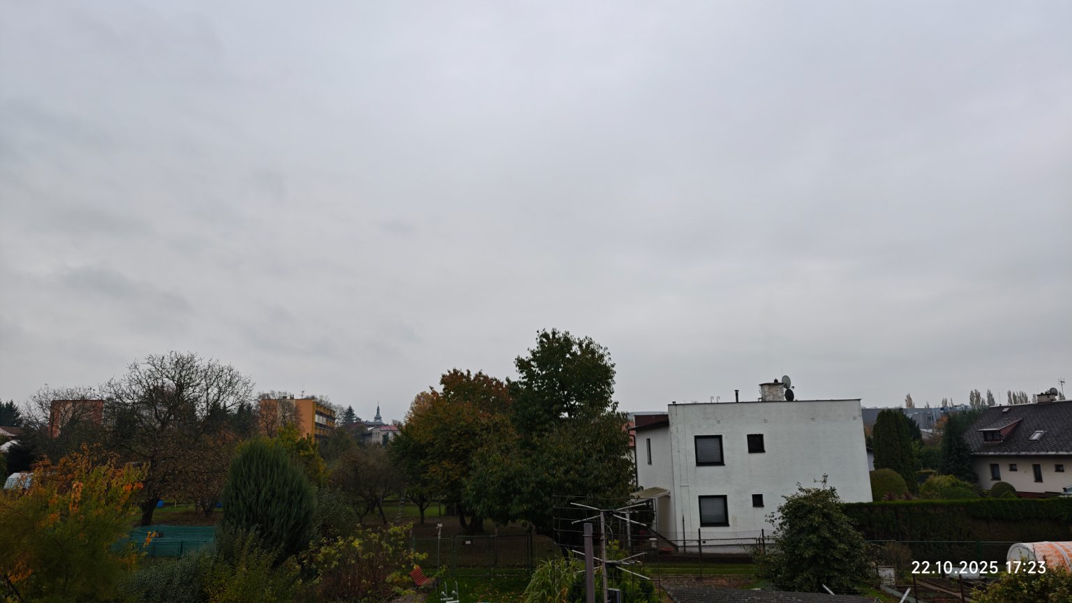 Zataženo s deštěm, zatím napršel necelý jeden milimetr. Venku se to pořádně barví.