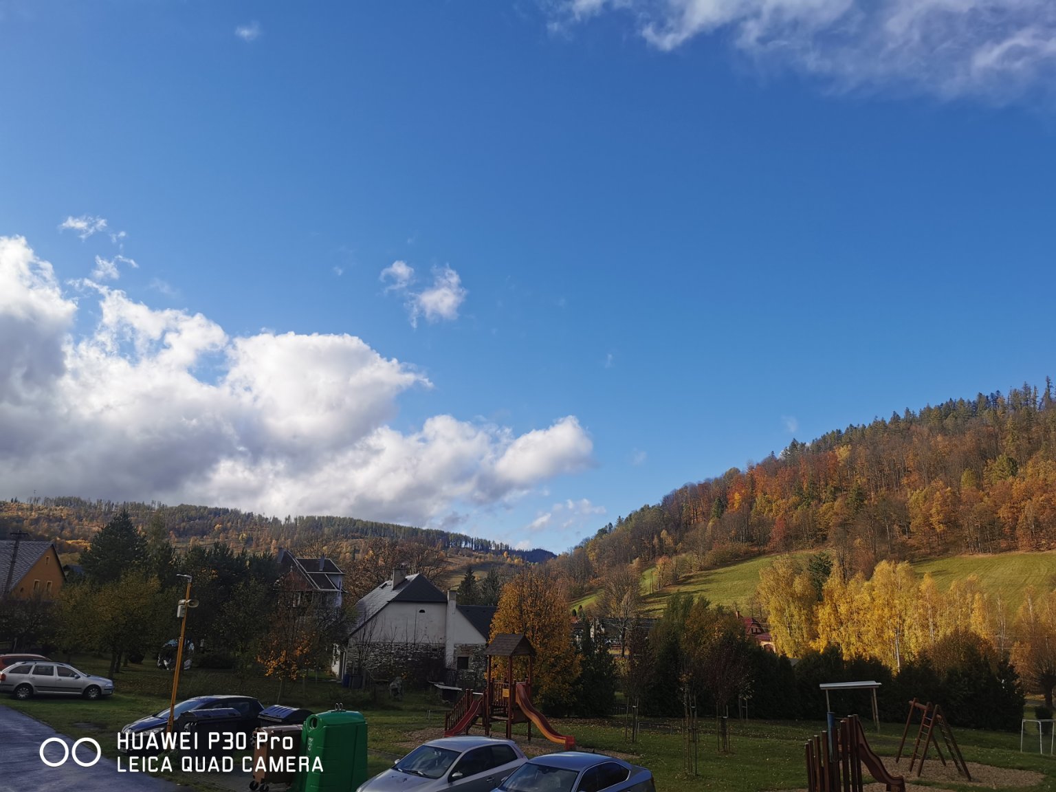 Vydatný déšť (možná se objevily i menší krupky). Foukal i nárazový vítr. Duha.
