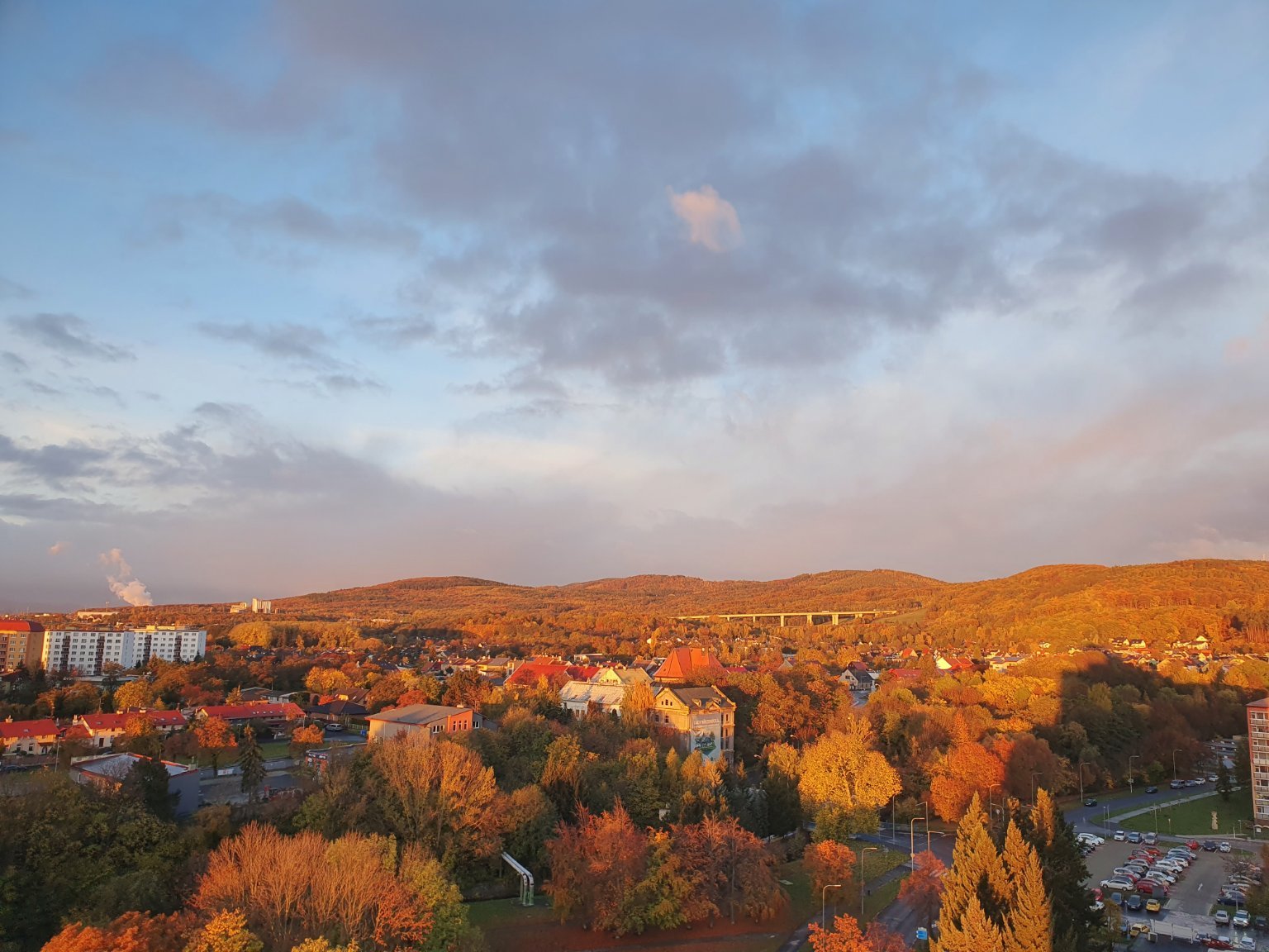Oblačno, mírný západní vítr, tlak 1011 hPa.