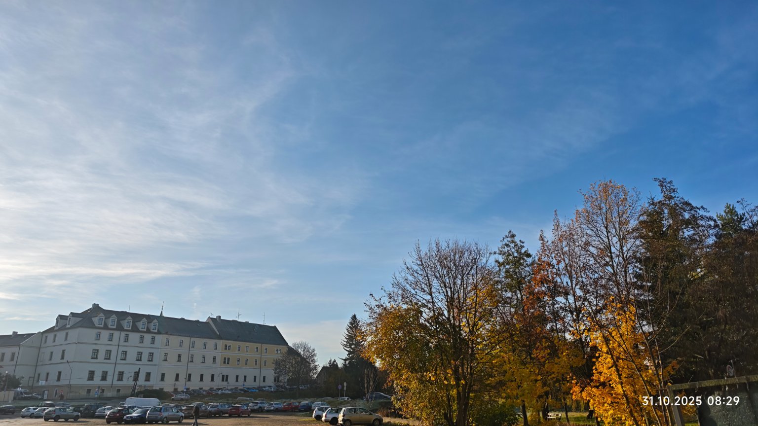 Kolem stínu rozhledny opět patrná slabší gloriola. ...... Vidět jsou přes 90 km vzdálené vrcholy Šumavy