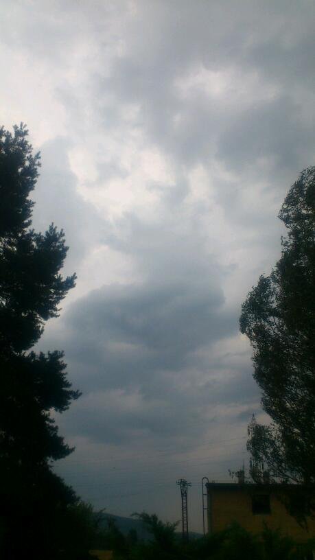 Je skoro zatazeno a k veceru byla mirna prehanka. Vitr je slaby. Odpoledne bylo kolem 32 st. Na vichod od nas je vydet pekna bourka.