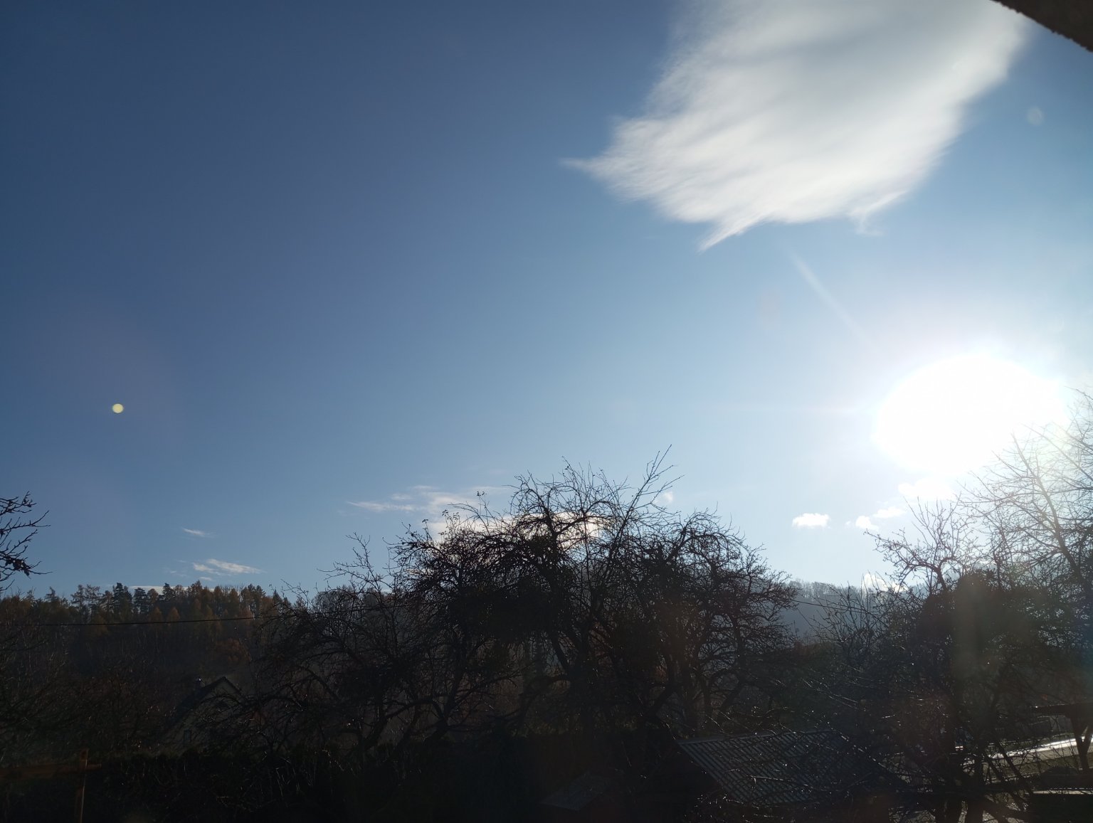 Aktuálně převažuje většinou zataženo, slabounká mlha a fouká většinou vánek