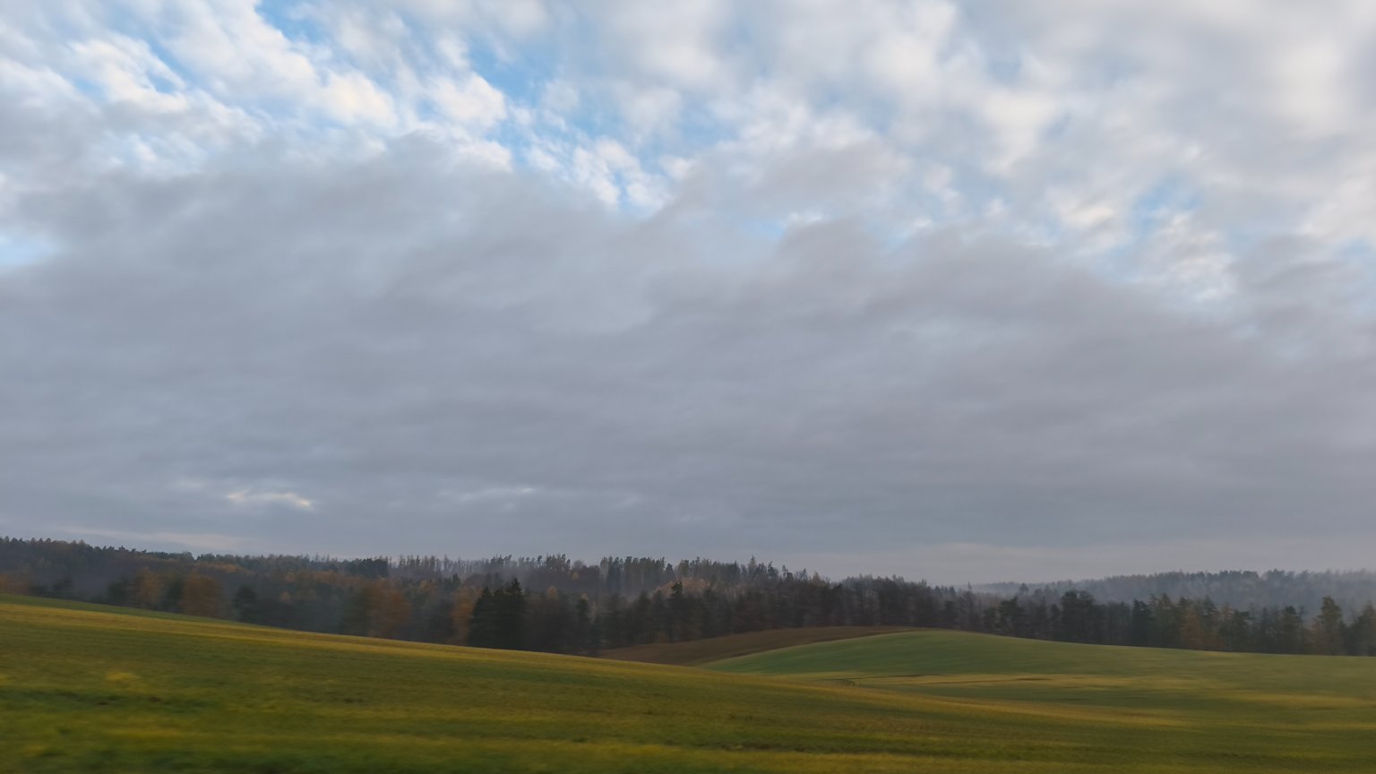 Mrholí, hustá mlha, dohlednost 100m, klidno