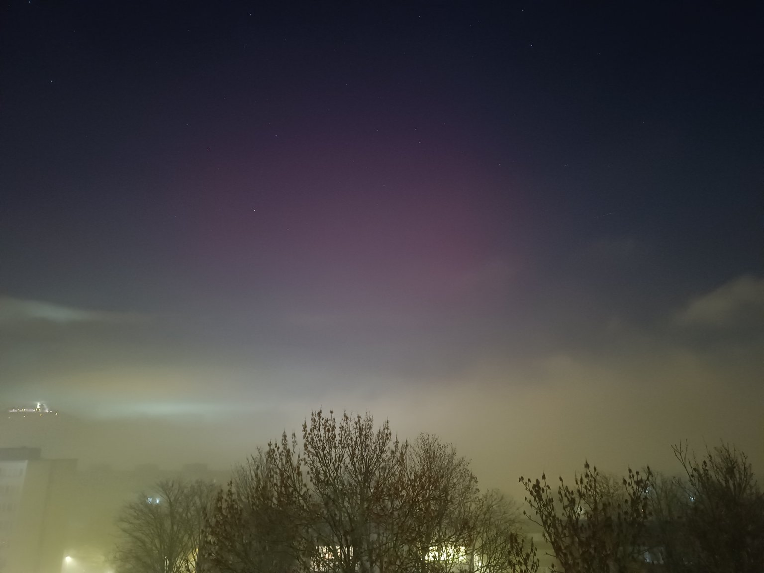 Hustější mlha, celkem zima. Nad mlhou se zřejmě nachází na polární záře, ale zde viditelná není..