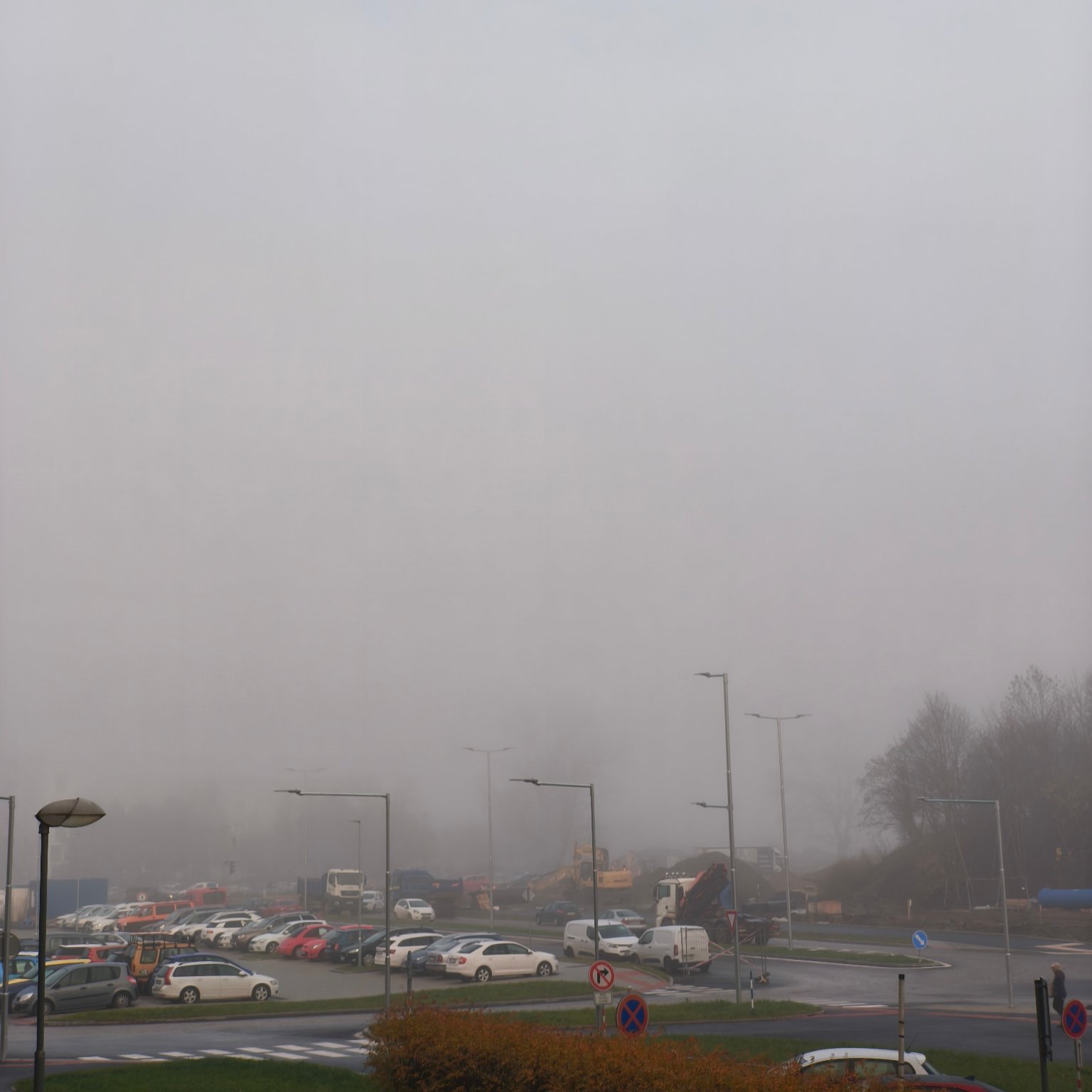 Zataženo, pošmourno, klidno, tlak 1013 hPa.