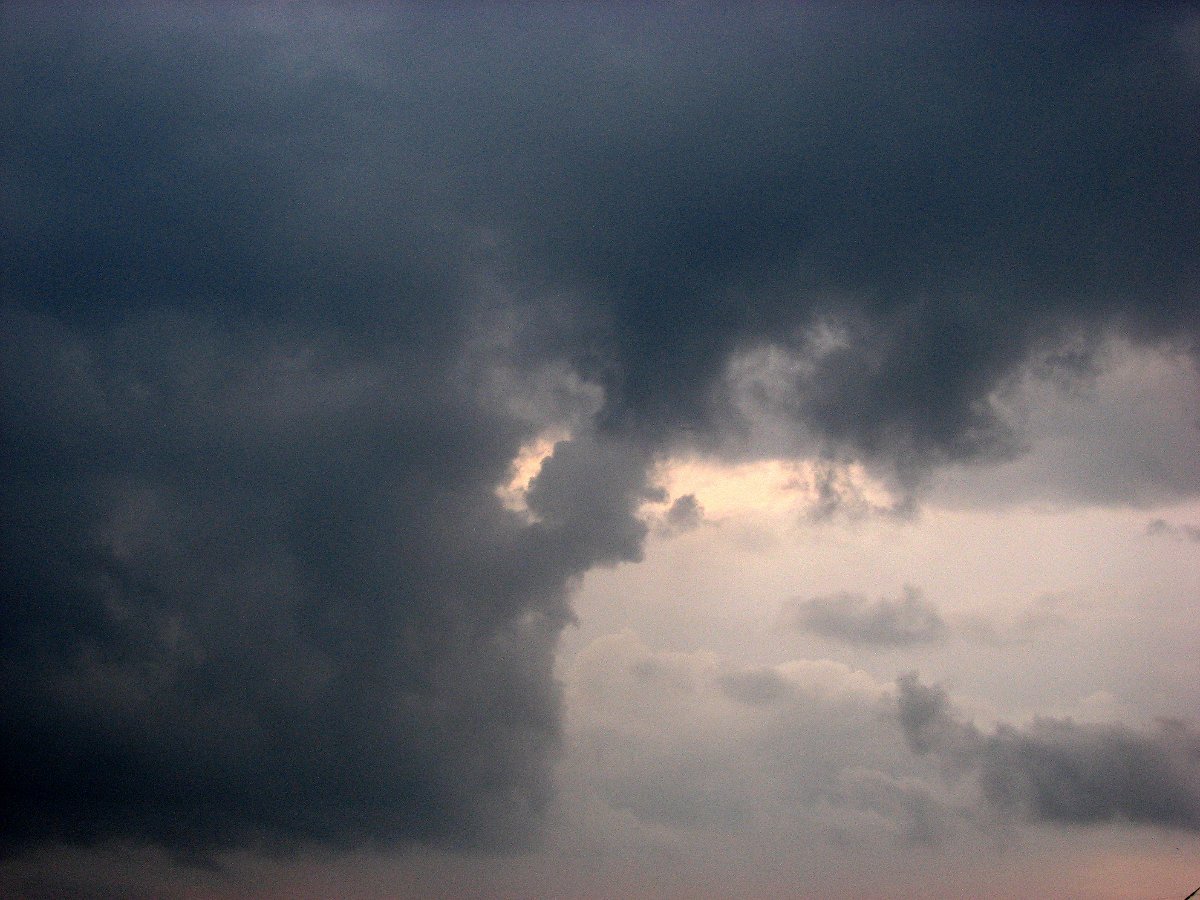 Slabší bouřka s delším deštěm se blíží od východu. Za půl hodinky by tu měla být. Pohled je na bouřku severně od Frýdlantu nad Polskem a Německem