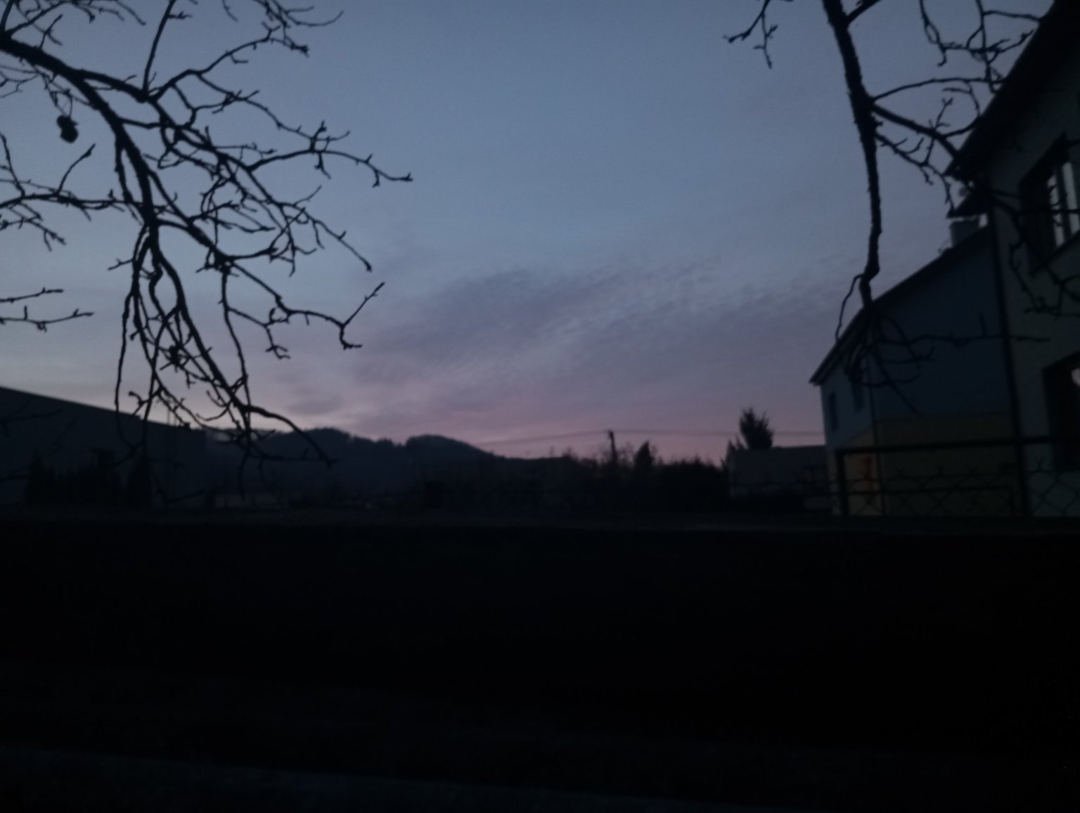 -°C, Oblačno až zataženo, Sníh: 0 cm. Pěkný barevný večer, a k tomu typický Ostravský provoz...