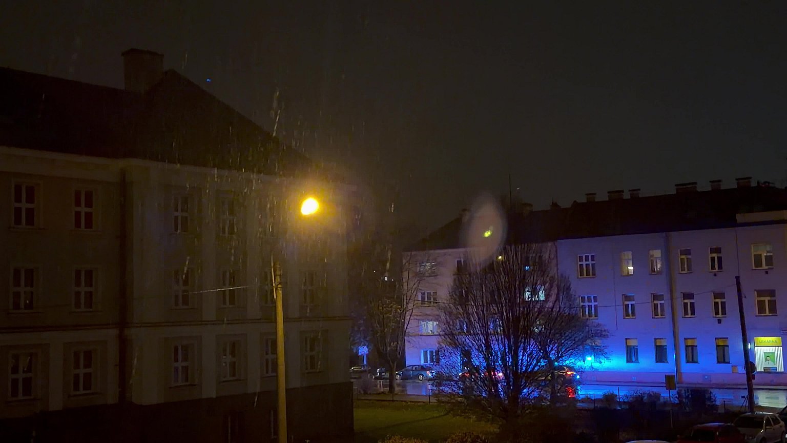 Aktuálně převažuje většinou zataženo, zpočátku slabý až mírný déšť se sněhem, postupně však mírné mokré sněžení a fouká většinou slabý přechodně až mírný vítr