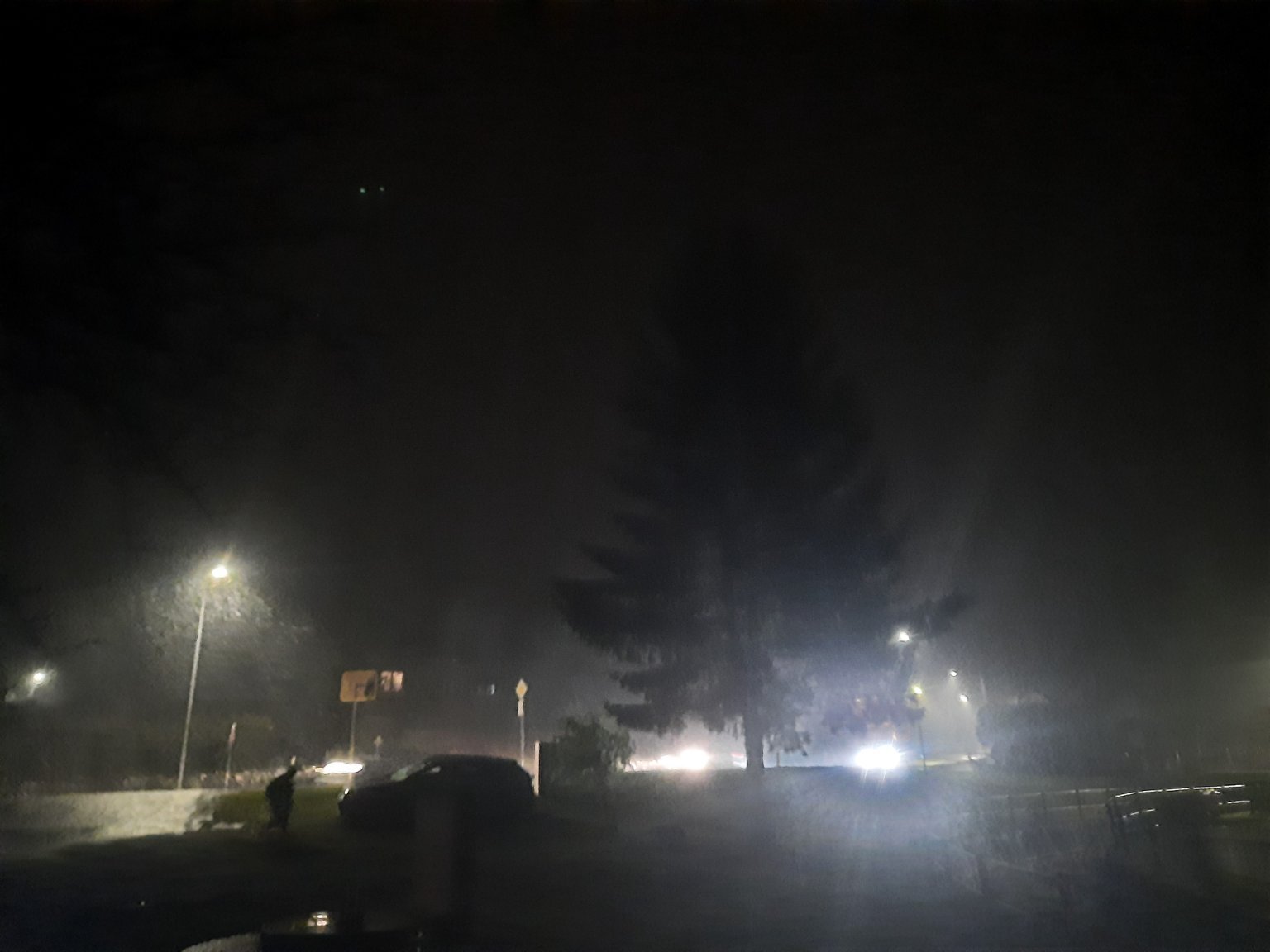 0,5°C, Mírné až slabé sněžení, Sníh: poprašek. Začíná se tvořit zatím jen drobný poprašek, zatím bo od SZ sem jdou přeháňky a zároveň od JZ trvalé srážky, což znamená zesílení, takže by mohlo cosi nasněžít, uvidíme ráno.