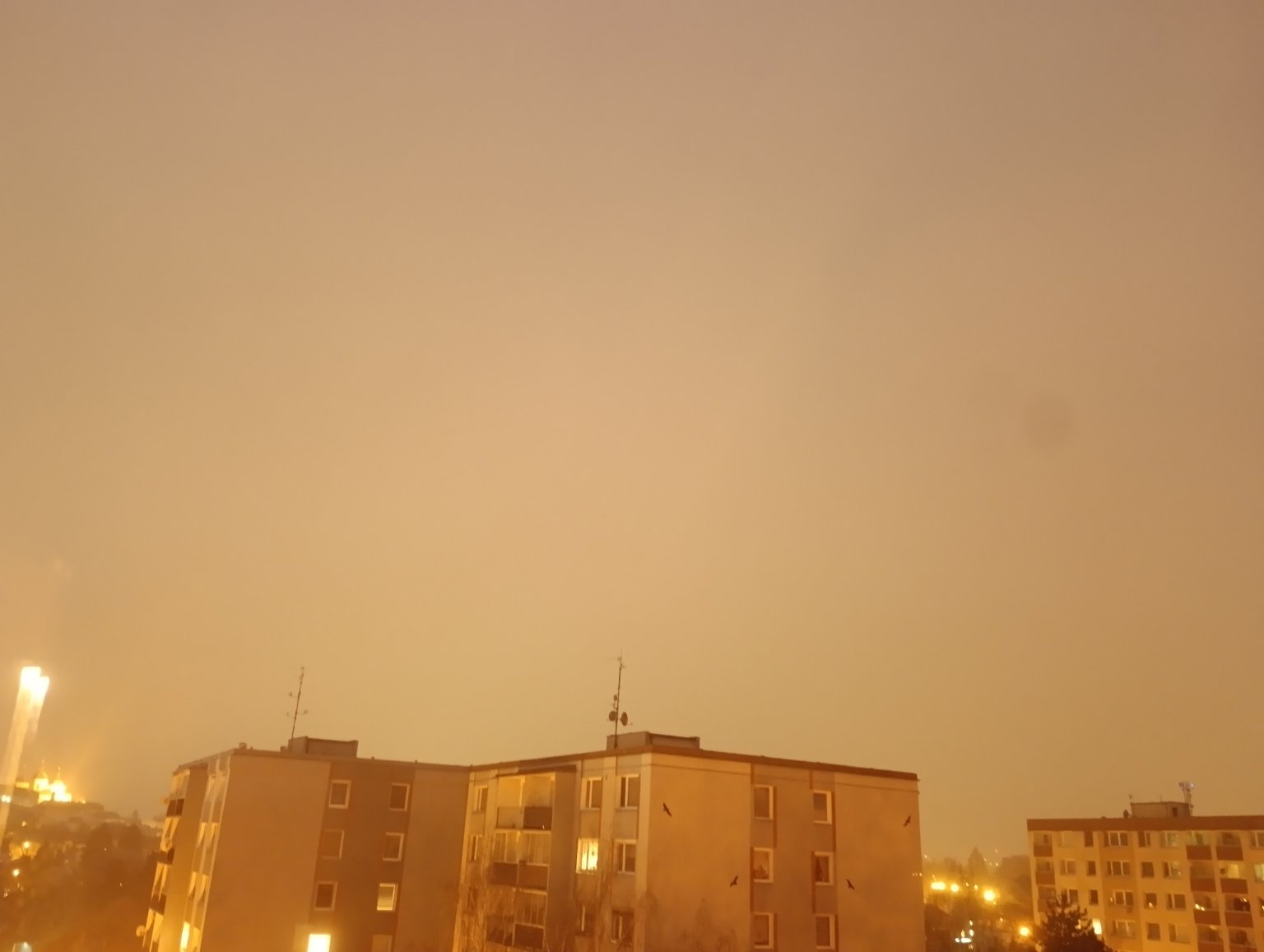 Mírné sněžení, tlak 1005,3 hPa, slabý jižní vítr.