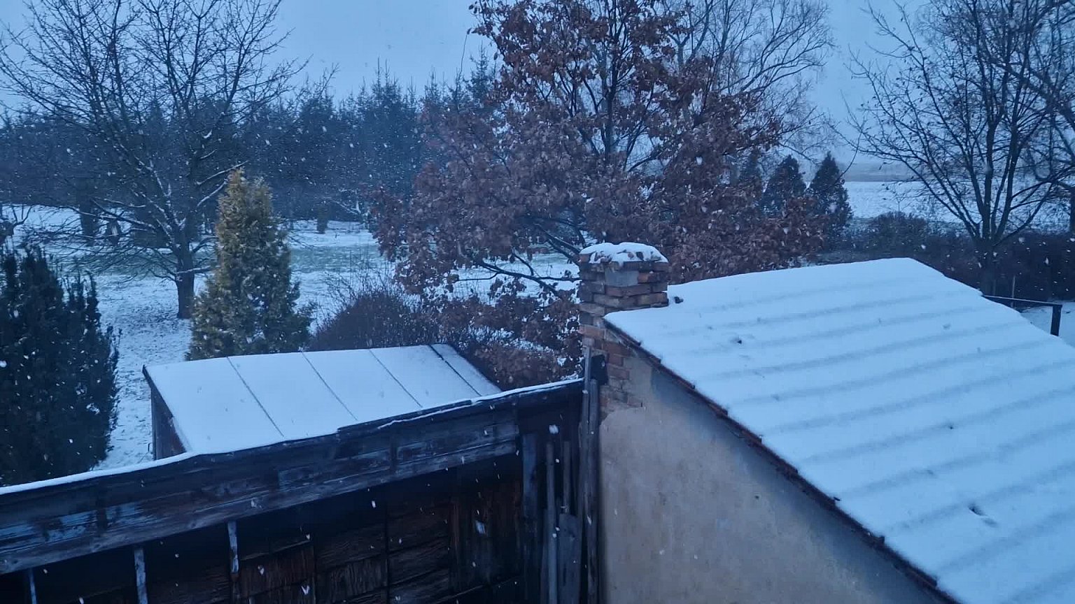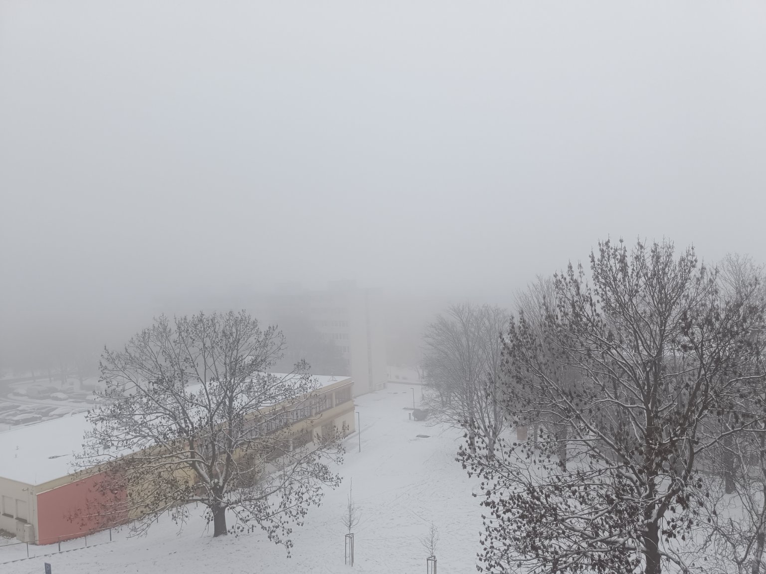Zataženo, v dáli s mlhou. Přes noc připadlo kolem 7 cm mokrého sněhu.
