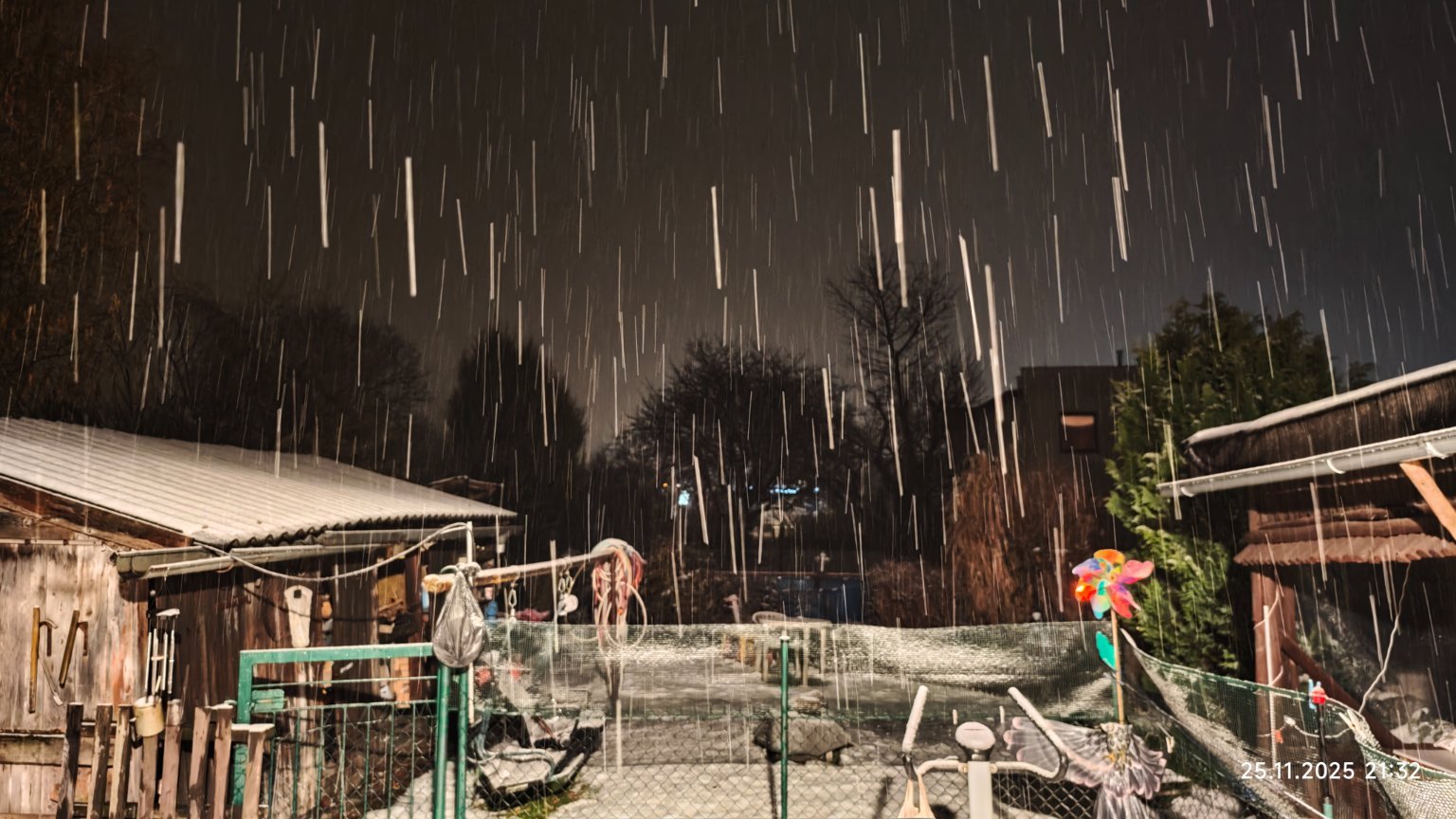 Ráno cca 7 cm mokrého sněhu, který odpoledne vlivem teplot kolem 1°C sesedal, od cca 15-16 h opět sněží a připadlo od té doby kolem 2 cm opět mokrého sněhu. Teplota spadla na 0°C. Opatrně hlavně na silnicích.