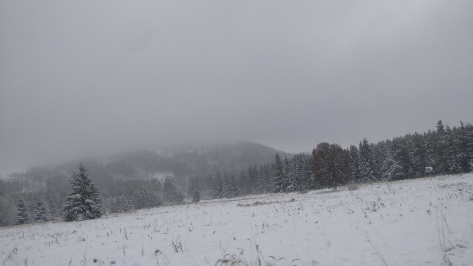 Zamračené, mierne sneženie