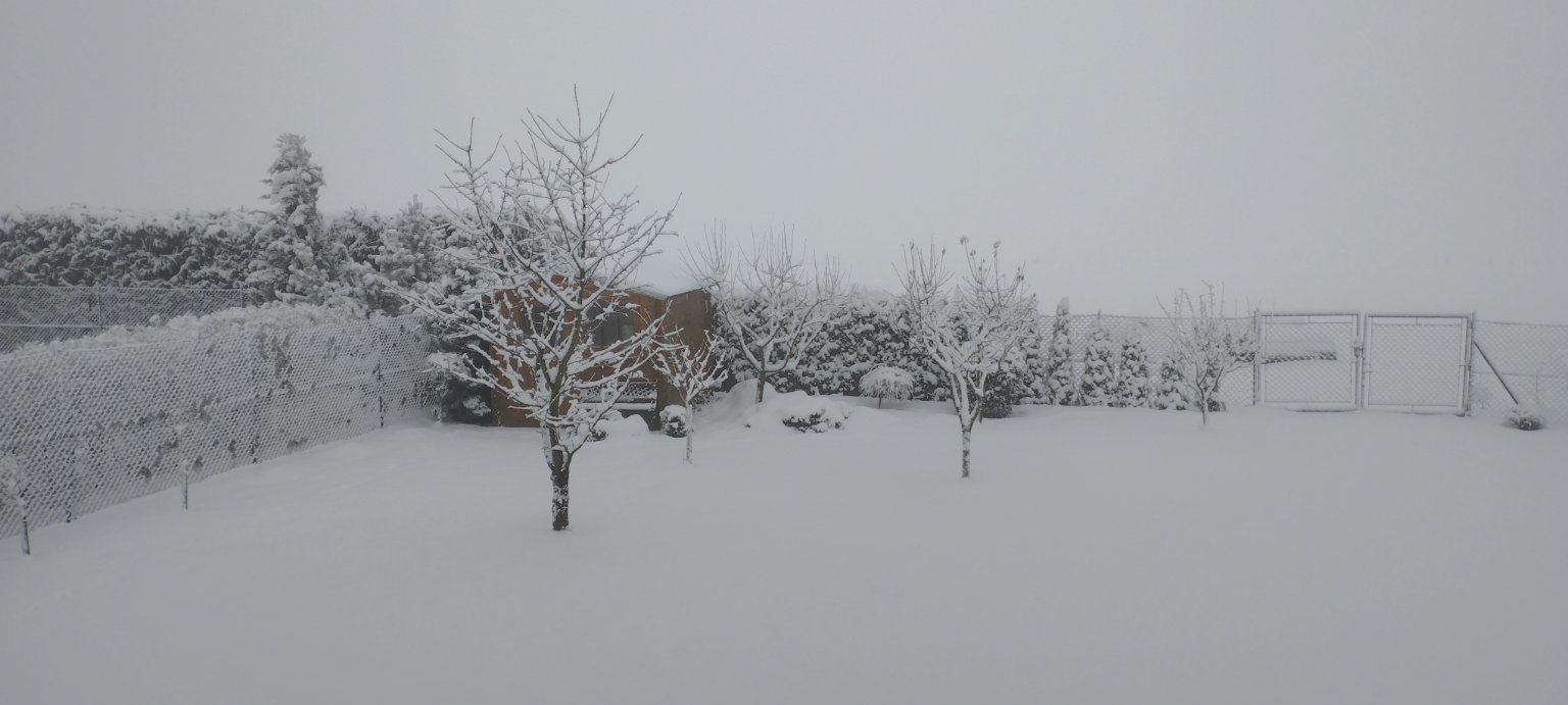 Pěkné, tady dneska máme jen trávu, ale aspoň sněžilo.
