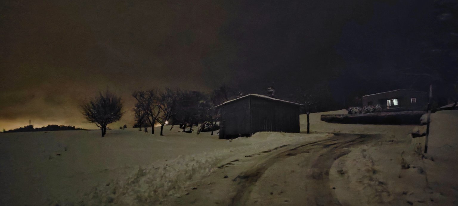-1,5°C, Zataženo, zanedbatelné sněžení, Sníh: 14 cm. Krásně zasněžené Beskydy, kéž by tak bylo na Vánoce, sem tam spadne nějaká ta vločka.