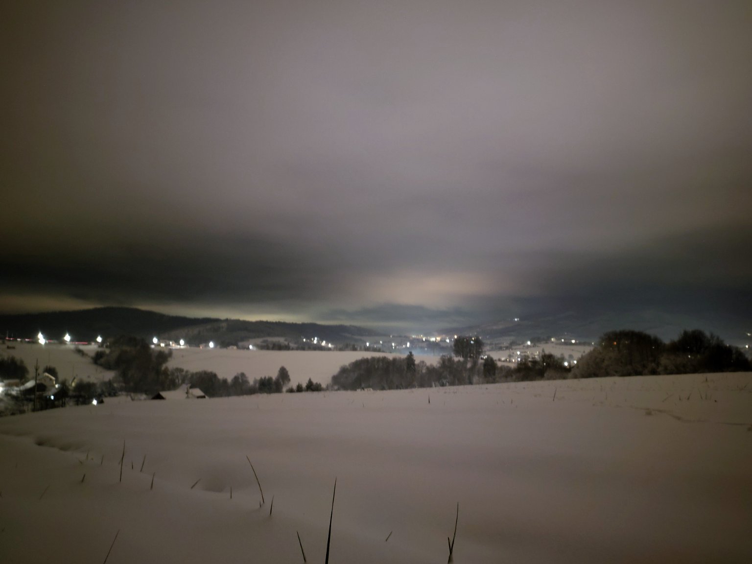 Zataženo, slabounké sněžení. Večer připadly ~2 cm sněhu ❄️