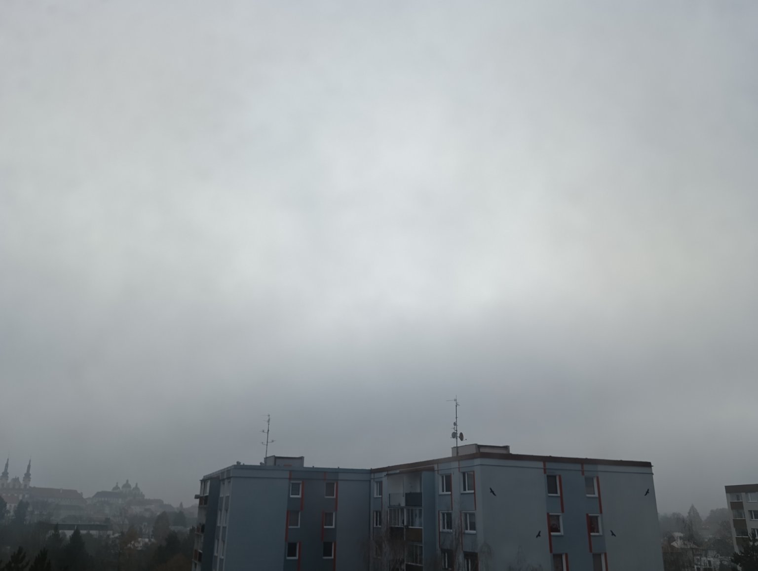 Skoro jasno, malý pás altocummulu. Bezvětři